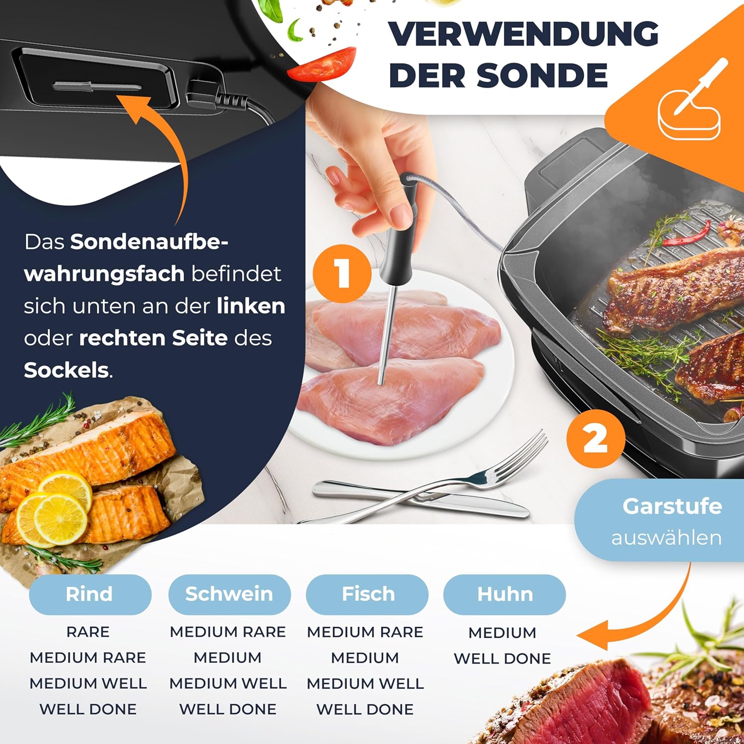 𝐌𝐔𝐋𝐓𝐈𝐅𝐔𝐍𝐊𝐓𝐈𝐎𝐍𝐀𝐋𝐄𝐒 𝐊𝐎𝐂𝐇𝐆𝐄𝐑Ä𝐓 𝐅Ü𝐑 𝐃𝐄𝐍 𝐀𝐋𝐋𝐓𝐀𝐆: All-in-One, mit 16 automatischen Programmen wie Grillen, Backen, Schmoren oder Dampfgaren ersetzt der Multikocher mehrere Küchengeräte in einem. Ideal für Familienküche und gesundes Kochen ohne Aufwand. 𝐒𝐌𝐀𝐑𝐓 𝐂𝐎𝐎𝐊 𝐒𝐘𝐒𝐓𝐄𝐌 𝐌𝐈𝐓 𝐃𝐎𝐏𝐏𝐄𝐋𝐃𝐄𝐂𝐊𝐄𝐋: Die innovative Smart Cook Funktion nutzt beide Deckelarten gleichzeitig für gleichmäßige Hitzeverteilung. Perfekt für Pizza, Aufläufe, Fleisch oder Gemüse – alles auf den Punkt gegart. 𝐓𝐄𝐌𝐏𝐄𝐑𝐀𝐓𝐔𝐑𝐒𝐎𝐍𝐃𝐄 𝐅Ü𝐑 𝐏𝐑Ä𝐙𝐈𝐒𝐄 𝐆𝐀𝐑𝐒𝐓𝐔𝐅𝐄𝐍: Die integrierte Sonde misst die Kerntemperatur exakt. Voreinstellungen für Rind, Schwein, Fisch und Huhn sorgen für punktgenaues Garen – von rare bis durchgegart. 𝐊𝐎𝐌𝐅𝐎𝐑𝐓𝐀𝐁𝐋𝐄 𝐁𝐄𝐃𝐈𝐄𝐍𝐔𝐍𝐆 𝐌𝐈𝐓 𝐕𝐎𝐑𝐇𝐄𝐈𝐙- 𝐔𝐍𝐃 𝐓𝐈𝐌𝐄𝐑𝐅𝐔𝐍𝐊𝐓𝐈𝐎𝐍: Das übersichtliche Bedienfeld mit Start/Stop, Temperatur- und Zeiteinstellung sowie Warmhaltefunktion macht die Nutzung besonders einfach und effizient. 𝐋𝐄𝐈𝐂𝐇𝐓 𝐙𝐔 𝐑𝐄𝐈𝐍𝐈𝐆𝐄𝐍 𝐔𝐍𝐃 𝐅𝐀𝐌𝐈𝐋𝐈𝐄𝐍𝐅𝐑𝐄𝐔𝐍𝐃𝐋𝐈𝐂𝐇: Der 8 Liter große Kochtopf bietet ausreichend Platz für große Portionen. Zubehör wie Korb, Gitter oder Zange ist spülmaschinenfest – für mühelose Reinigung nach dem Kochen. | قیمت یورویی : 146.8€