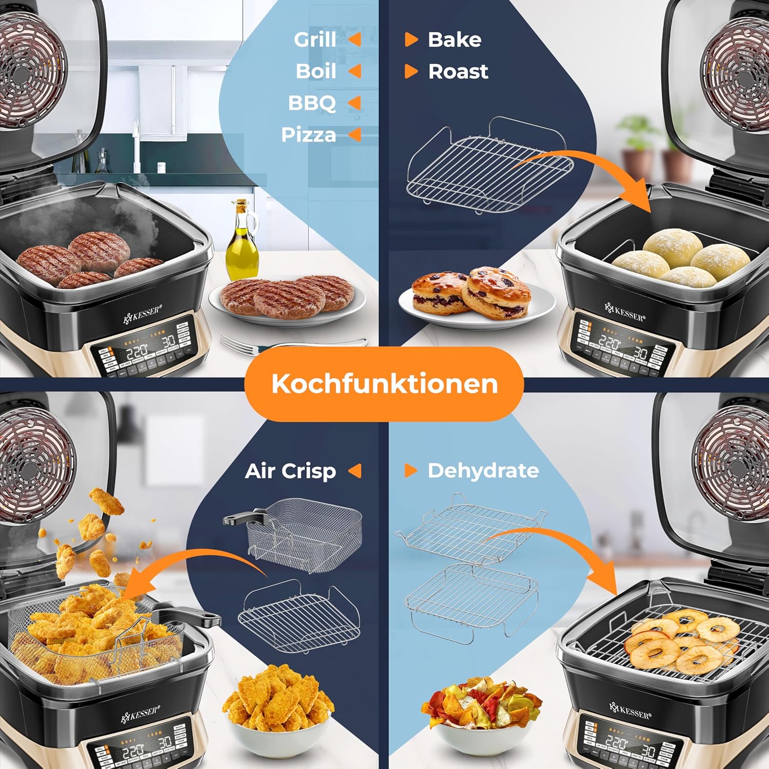KESSER® Multikocher mit Heißluftfritteuse 8L & 16 Programme Küchengerät - Grillen, Backen, Schmoren, Dampfgaren Vorheiz- & Warmhaltefunktion Schnellkochkopf Reiskocher Slow Cooker, Joghurtbereiter Champagne | قیمت یورویی 199.8€