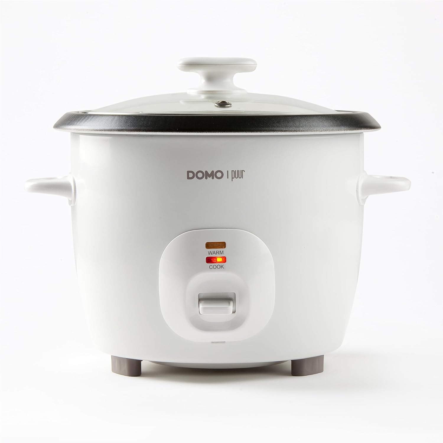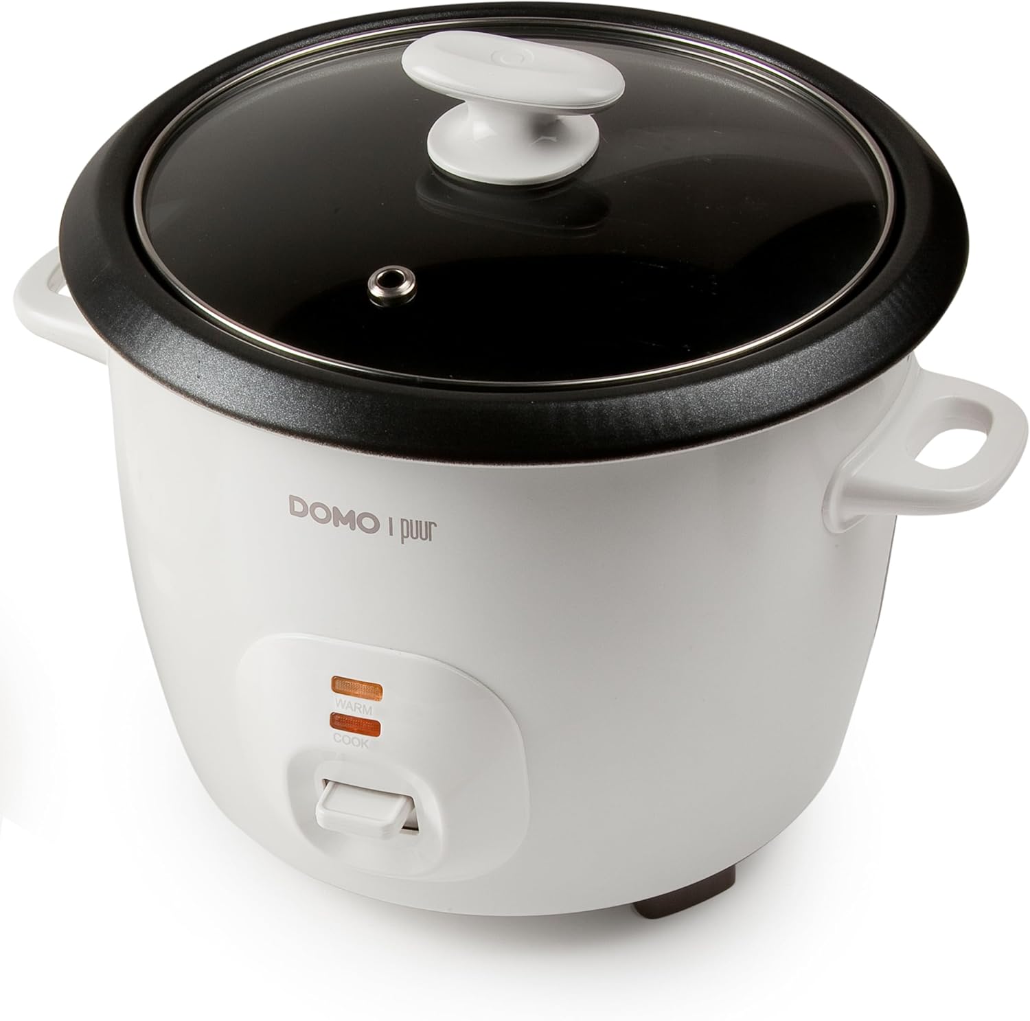 DOMO DO9176RK Reiskocher 'Puur' 1,3 L, weiß لینک آمازون : https://www.amazon.de/dp/B075V57CHV?th=1&psc=1 ۲ عملکرد: پخت و پز و گرم نگه داشتن ظرفیت: ۱.۳ لیتر «حس باحال» - گریف درب شیشه ای کاسه بادوام و قابل جدا شدن با روکش نچسب تفلون استفاده آسان شامل: پیمانه، ملاقه و سبد بخارپز ۲۳۰ ولت - ۵۰ هرتز - ۴۵۰-۵۳۶ وات