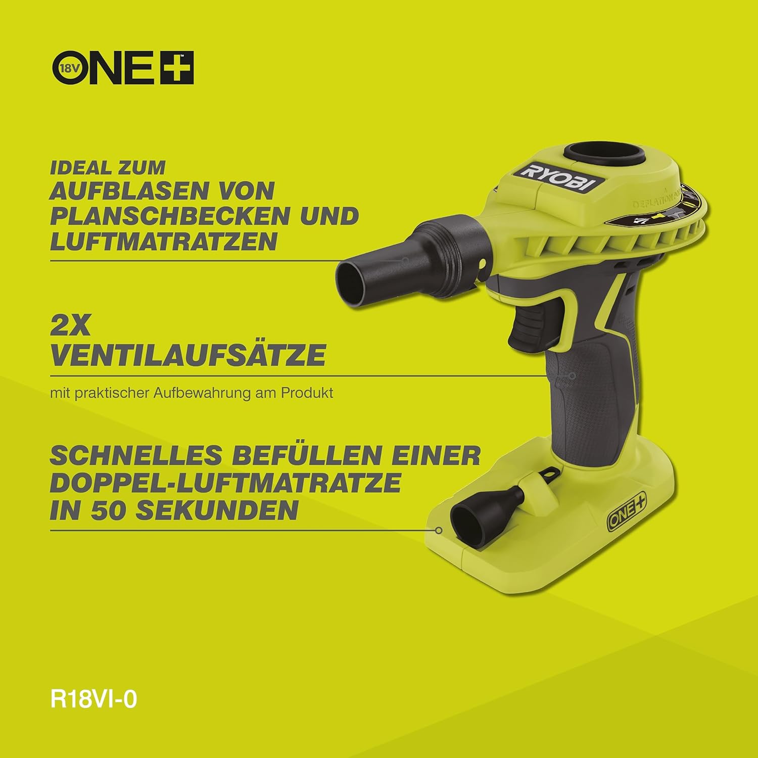 RYOBI 18V ONE+ Akku-Luftpumpe R18VI-0 (max. Druck 0,034bar, Luftstrom 210l/min, Ideal zum Aufpumpen von Schlauchbooten / Luftmatratzen, inkl. 2 Ventilaufsätze, ohne Akku und Ladegerät), Grün | قیمت یورویی 45.72€