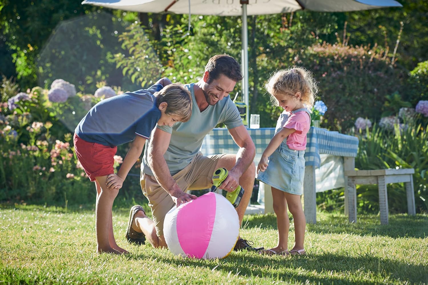 Teil des 18 V ONE+ Akku-Systems von RYOBI; Ein Akku für über 200+ Elektrowerkzeuge und Gartengeräte Ideal zum Aufpumpen von Schlauchbooten, Luftmatratzen und anderen Freizeitartikeln Schnelles Befüllen mit 210 l/min und einem max; Druck von 0,034 bar / 0,05 PSI Kann auch als Werkstattgebläse, zur schnellen Reinigung des Arbeitsplatzes, genutzt werden Inklusive Ventiladapter mit praktischer Aufbewahrung am Produkt Durch einfachen Wechsel des Aufsatzes kann die Luftpumpe auch zum Entlüften verwendet werden Bis zu 80 Minuten Laufzeit mit einem 18 V / 5,0 Ah Lithium+ Akku RB18L50 3 JAHRE GARANTIE - Alle Geräte sind auf langlebigkeit ausgelegt; Das gilt auch für die Garantie; Registriere dafür das erworbene Produkt auf unserer Webseite Lieferumfang: Akku-Luftpumpe R18VI-0, ohne Akku und Ladegerät | قیمت یورویی : 45.72€