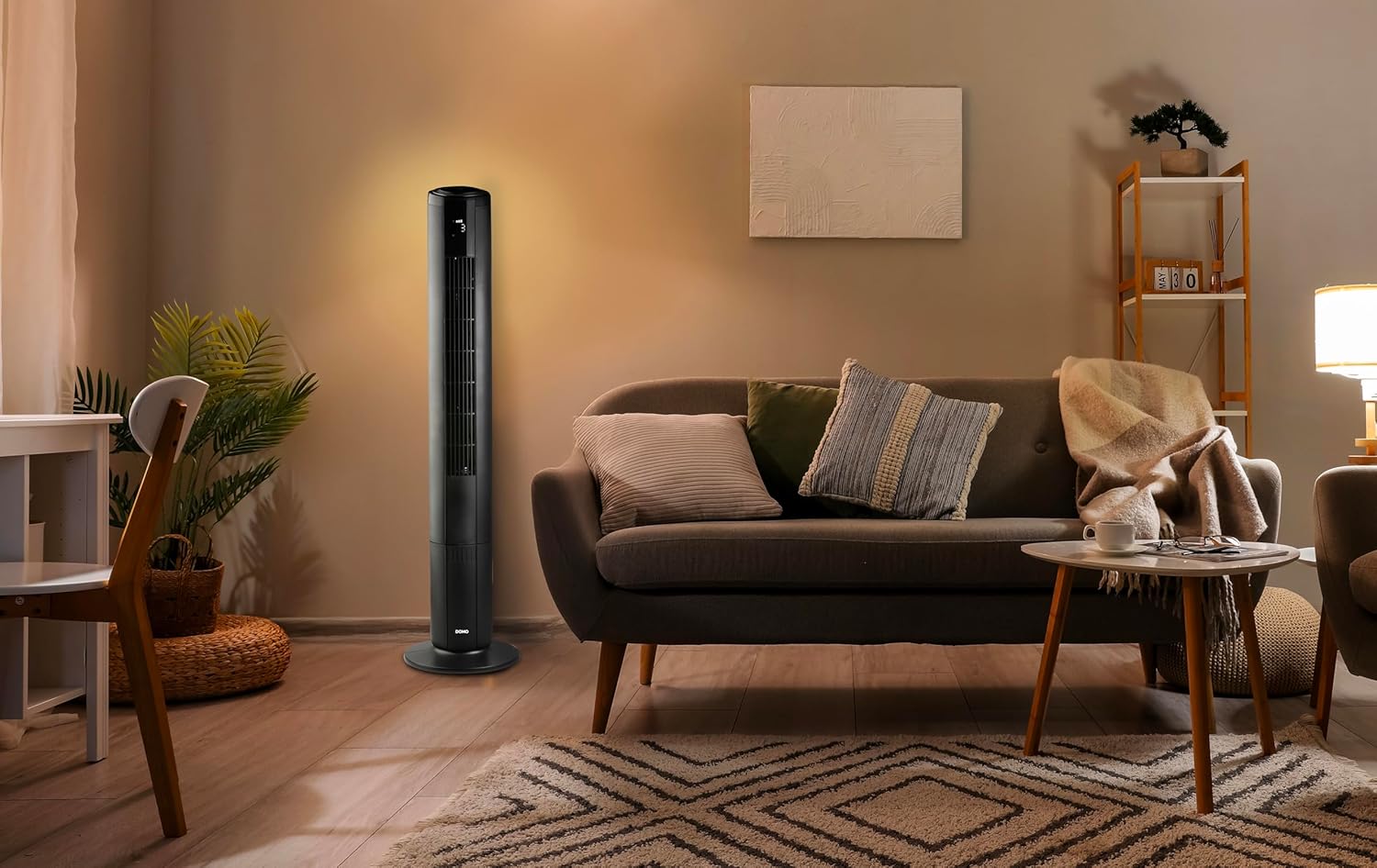 DOMO DO8153 Turmventilator mit Fernbedienung – 5 Geschwindigkeiten – 4 Modi – 8 Stunden Timer – Oszillation – Ambientebeleuchtung – Schwarz | قیمت یورویی 89.95€