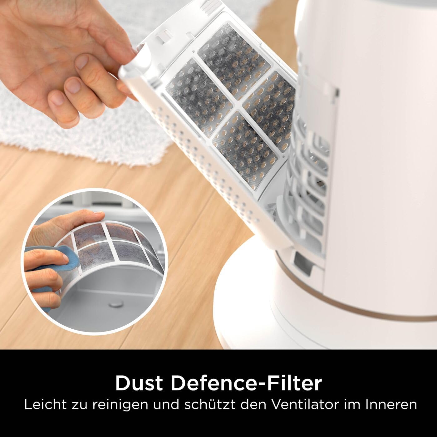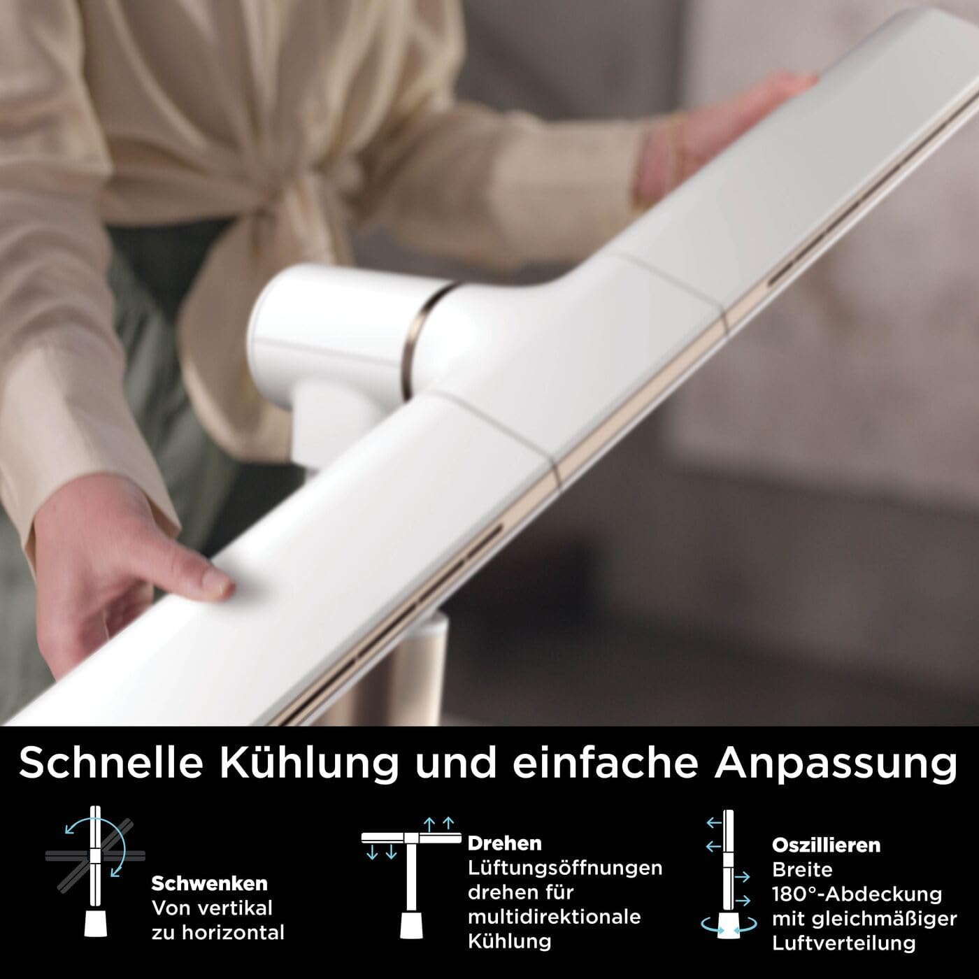 LEISTUNGSSTARKER, FLÜGELLOSER SÄULENVENTILATOR: Schnelle, multidirektional kühlende Luftzirkulation bis zu 20 Meter weit* (* im Boost-Modus). ANPASSBARE ABKÜHLUNG: Wechseln vom fokussierten vertikalen zum horizontalen Modus. Durch Drehen der Lüftungsschlitze wird in zwei Richtungen gleichzeitig gekühlt. Oszillation bis zu 180°. Anpassbare Höhe für jeden Raum. LEISER BETRIEB: 10 Geschwindigkeitsstufen stehen zur Verfügung, von leiser, sanfter Kühlung (nur 40 dB in Stufe 1) bis hin zu starker Kühlung. EINFACHE BEDIENUNG UND REINIGUNG: Timer-Modus (1, 2, 4, 8 oder 12 Stunden). Sondermodi: Sleep (Ruhe), Boost (Boost) und Breeze (Brise). Abwischbares, flügelloses Design. Ein leicht zu reinigender Staubschutz-Filter schützt den Lüfter im Inneren LIEFERUMFANG: Shark TurboBlade Ventilator TF200SEUWH, magnetische Fernbedienung, AAA-Batterien. Horizontaler Modus: Höhe: 80–96 cm, Breite: 80 cm. Vertikaler Modus: Höhe: 112–128 cm. Basisdurchmesser: ca. 75 cm Gewicht: 6,45 kg. Farbe: Weiß. 0 | قیمت یورویی : 279.99€