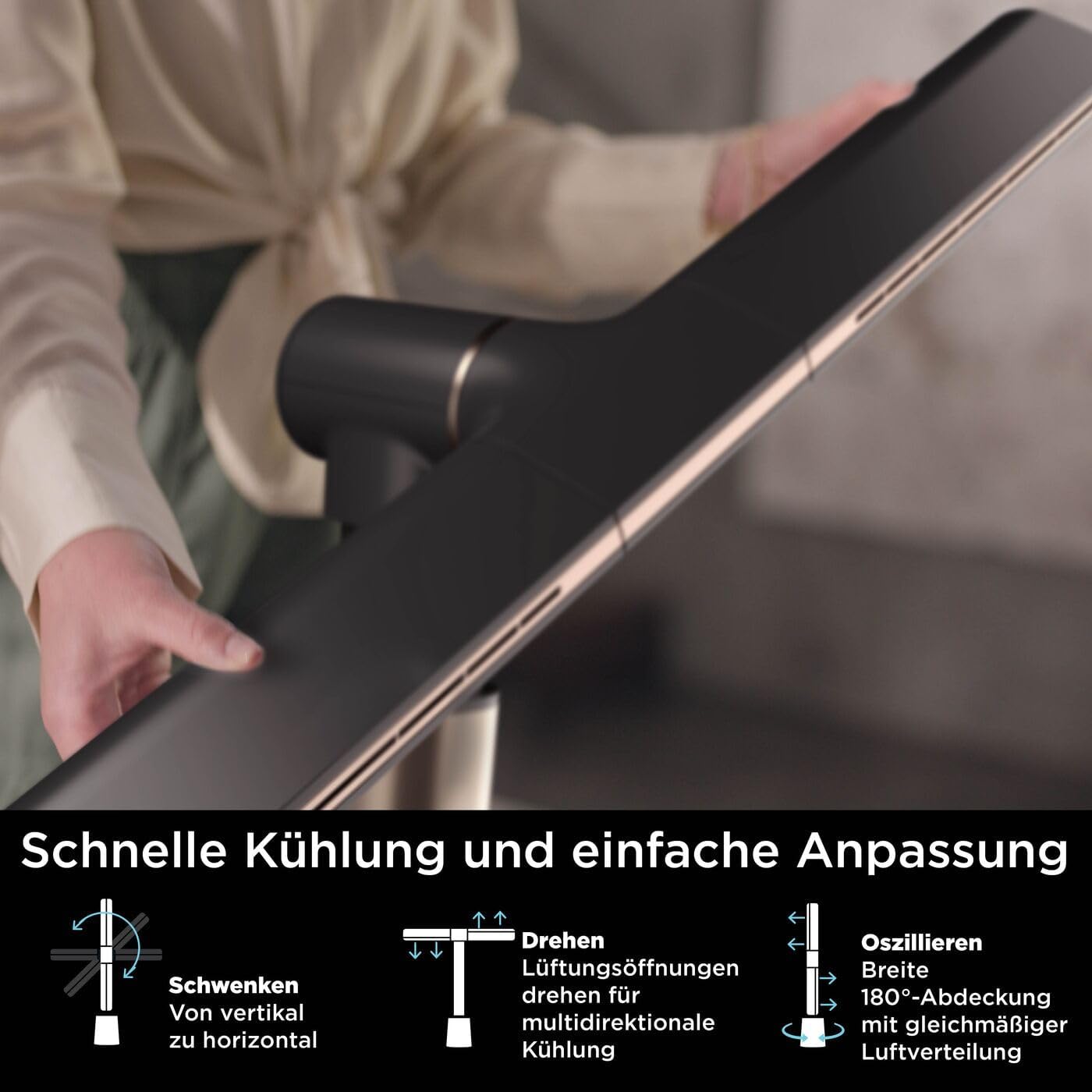 LEISTUNGSSTARKER, FLÜGELLOSER SÄULENVENTILATOR: Schnelle, multidirektional kühlende Luftzirkulation bis zu 20 Meter weit* (* im Boost-Modus). ANPASSBARE ABKÜHLUNG: Wechseln vom fokussierten vertikalen zum horizontalen Modus. Durch Drehen der Lüftungsschlitze wird in zwei Richtungen gleichzeitig gekühlt. Oszillation bis zu 180°. Anpassbare Höhe für jeden Raum. LEISER BETRIEB: 10 Geschwindigkeitsstufen stehen zur Verfügung, von leiser, sanfter Kühlung (nur 40 dB in Stufe 1) bis hin zu starker Kühlung. EINFACHE BEDIENUNG UND REINIGUNG: Timer-Modus (1, 2, 4, 8 oder 12 Stunden). Sondermodi: Sleep (Ruhe), Boost (Boost) und Breeze (Brise). Abwischbares, flügelloses Design. Ein leicht zu reinigender Staubschutz-Filter schützt den Lüfter im Inneren LIEFERUMFANG: Shark TurboBlade Ventilator TF200SEU, magnetische Fernbedienung, AAA-Batterien. Horizontaler Modus: Höhe: 80–96 cm, Breite: 80 cm. Vertikaler Modus: Höhe: 112–128 cm. Basisdurchmesser: ca. 75 cm Gewicht: 6,45 kg. Farbe: Holzkohle. | قیمت یورویی : 279.99€