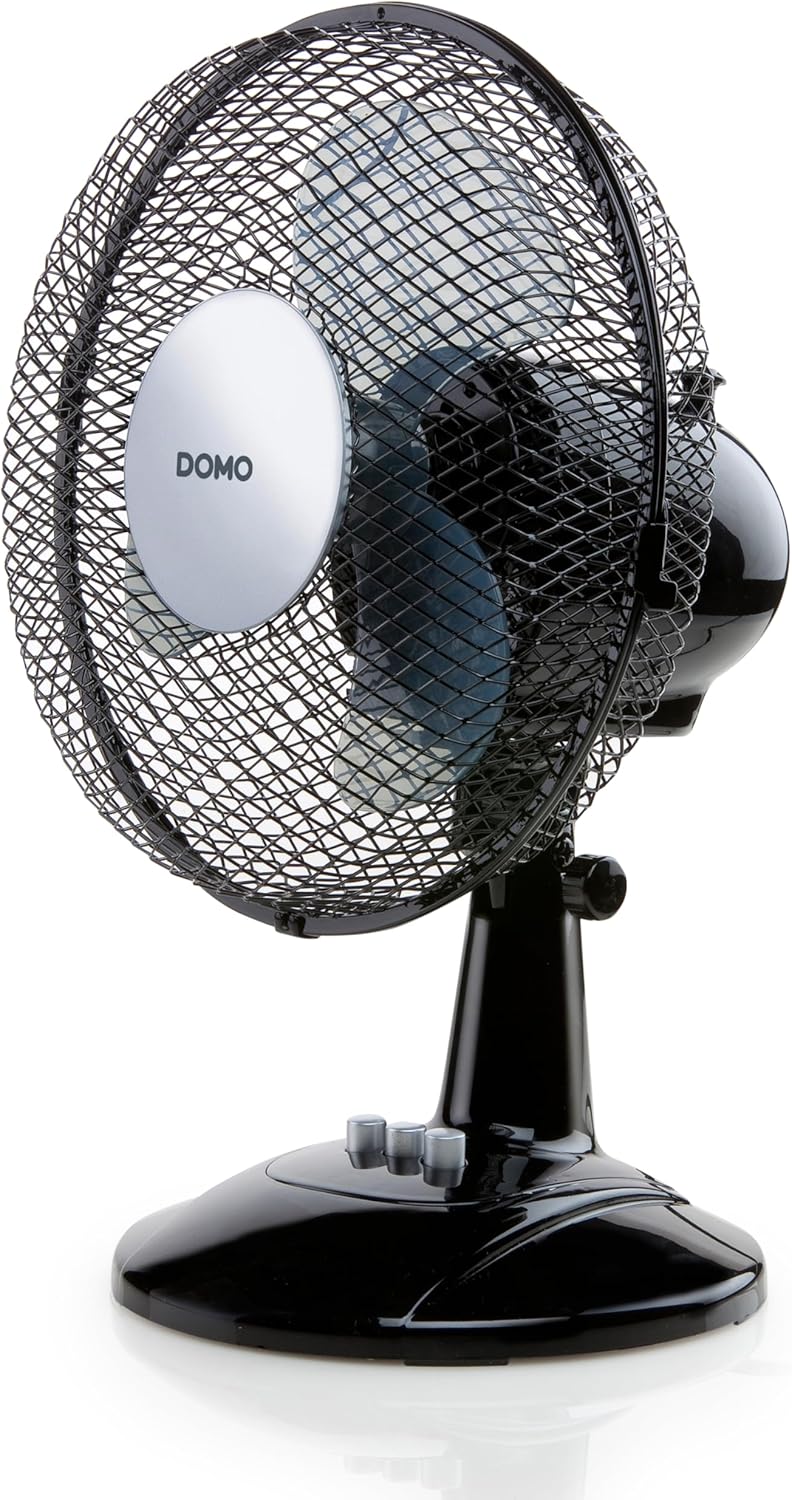 Domo DO8138 tafelventilator, Schwarz, 23 cm لینک آمازون : https://www.amazon.de/dp/B01FK2Z9IA?th=1&psc=1 ارتفاع: ۳۶ سانتیمتر قطر: ۲۳ سانتیمتر ۲ سرعته + قابلیت چرخش سر شبکهای با عملکرد شیب ۳ پره فن شفاف تاشو نوسان خودکار ۲۳۰ ولت - ۵۰ هرتز - ۳۰ وات