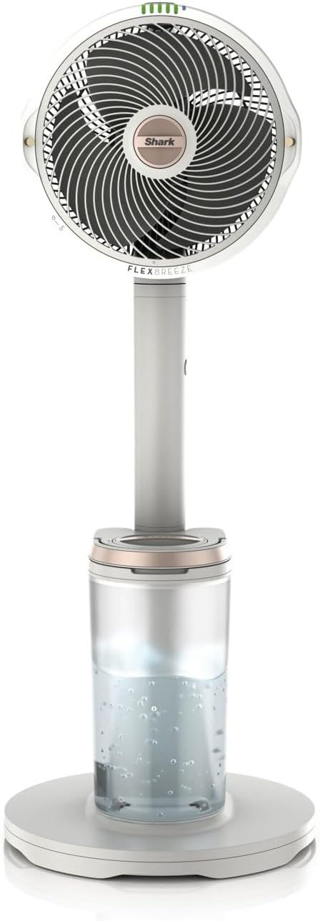 Shark FlexBreeze Pro Mist Akku-Ventilator für innen und außen mit Sprühsystem, tragbarer Sprühtank, 20 m, Stand- & Tischventilator, 5 Geschwindigkeitsstufen, leise, Fernbedienung, Dove FA300WHEU | قیمت یورویی 279.99€