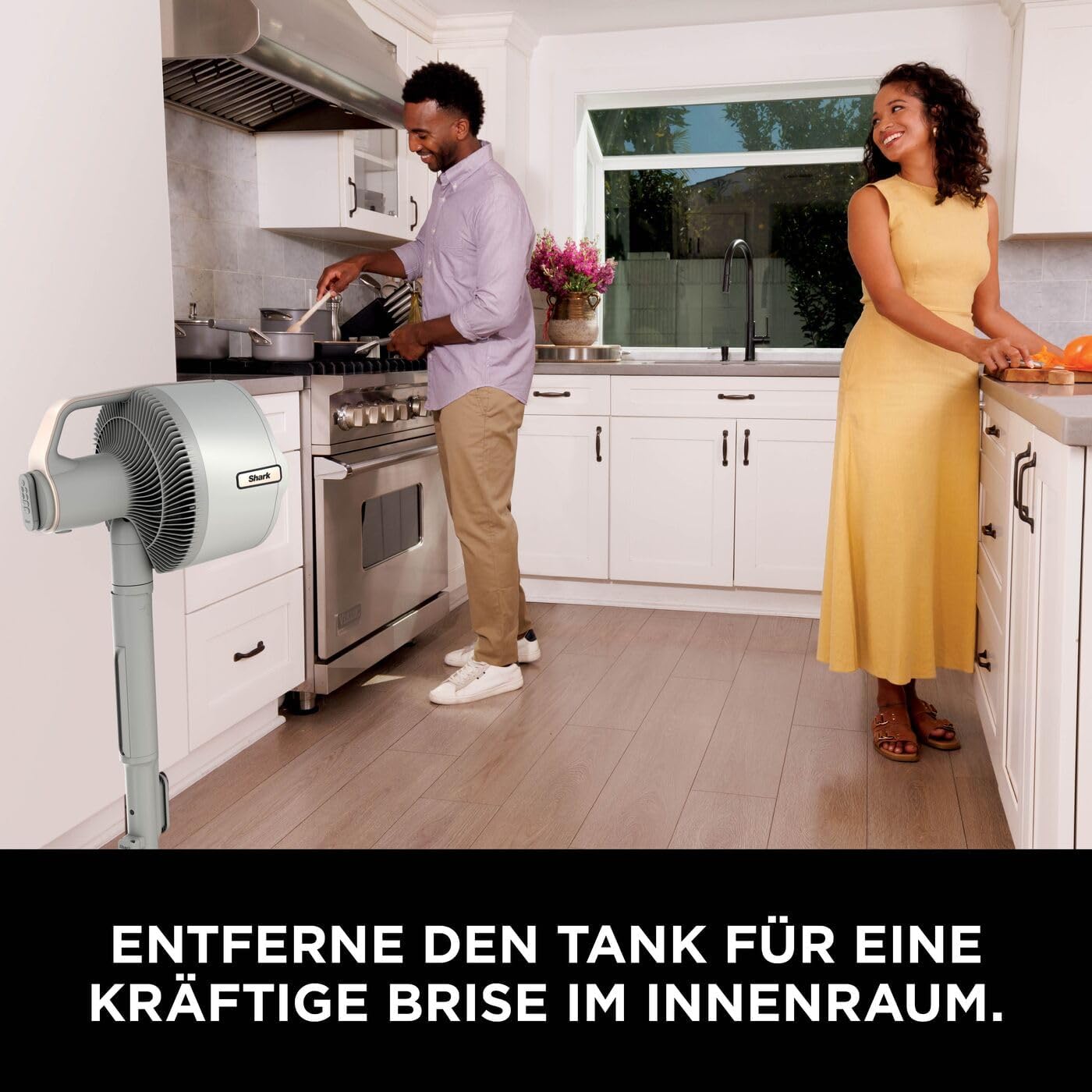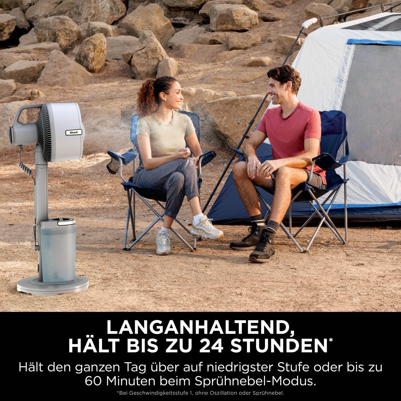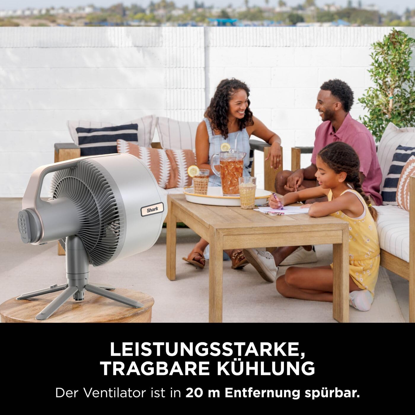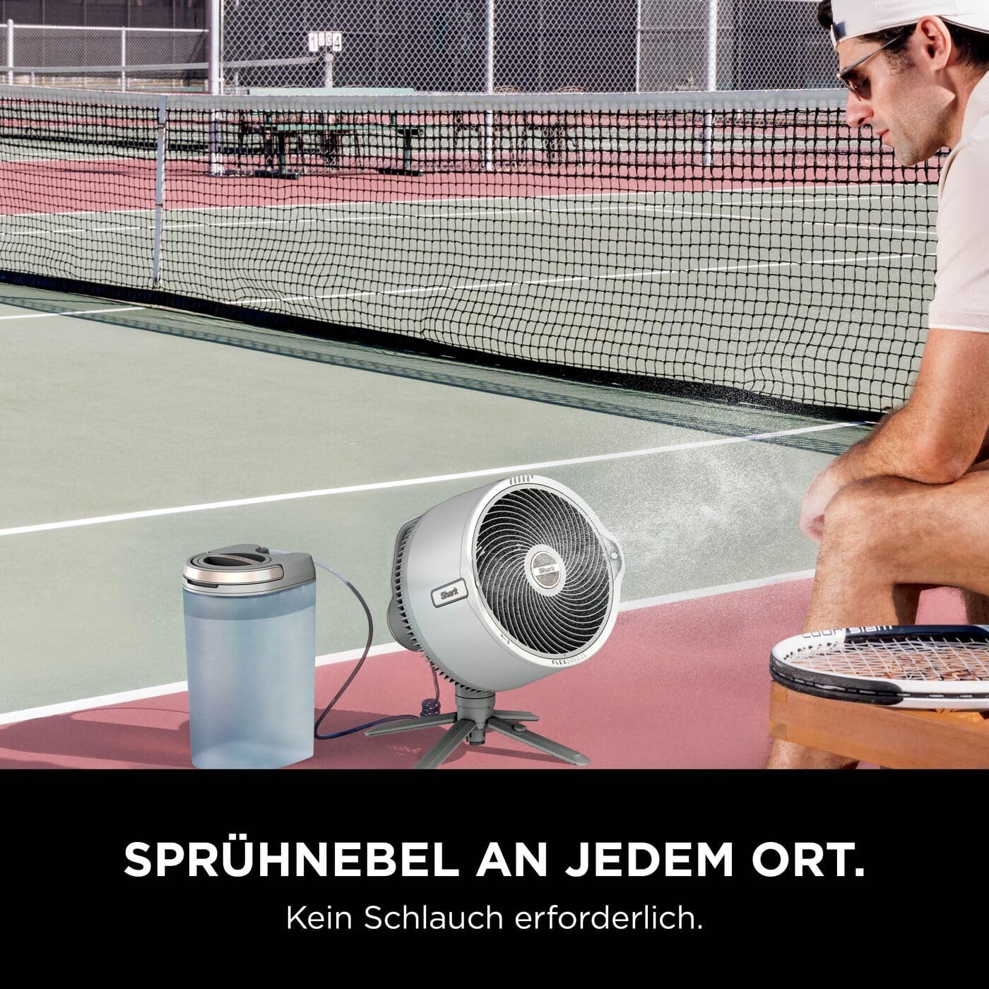 FLEXIBLES SPRÜHEN IM FREIEN: Kein Schlauch, keine unansehnlichen Wassereimer – mit dem tragbaren MistPro Tank von Shark haben Sie Ihr Sprühsystem immer dabei LANGE LAUFZEIT: Mit bis zu 24* Stunden Laufzeit bei Stufe 1 (*ohne Oszillation oder Sprühen) können Sie den Ventilator entweder an die Steckdose anschließen oder kabellos betreiben BIS ZU 20 METER KÜHLREICHWEITE: Behalten Sie auch aus der Ferne einen kühlen Kopf. Mit einer 180°-Oszillation von Seite zu Seite und einer 55°-Neigung von oben nach unten profitiert jeder von der Brise WECHSELN IN SEKUNDEN: Wechseln Sie mit nur einem Knopfdruck zwischen zwei Ventilatormodi – Stand und Tisch. Einfach drücken, heben und in beiden Modi Sprühen und Oszillation genießen ENTHÄLT: FlexBreeze Pro Mist Ventilator, Standfuß, Sockel, tragbarer Sprühtank, Ladekabel, Fernbedienung für den Ventilator, ABMESSUNGEN: H: 93 cm B: 35 cm L: 35 cm. Gewicht: 7 kg. FARBE: Dove | قیمت یورویی : 279.99€