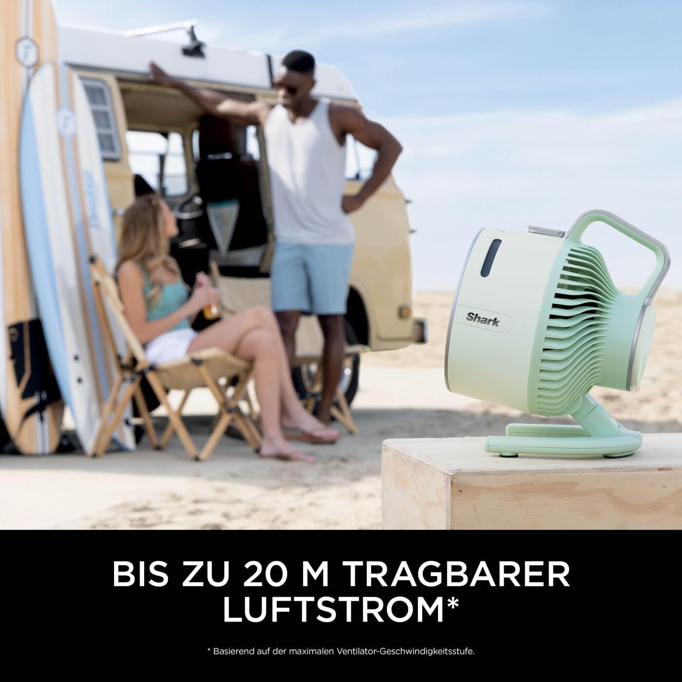 Nimm den Sprühnebel mit – drinnen oder draußen: Dank der HydroGo-Technologie von Shark, die ultrafeine Tröpfchen erzeugt, kannst du erfrischenden Sprühnebel sowohl drinnen als auch draußen genießen – für vollständige Kühlung, wo immer du bist. Robust für draußen, leise drinnen: Für Haltbarkeit im Freien mit Regenbeständigkeit und UV-Beständigkeit*. Drinnen sorgt der leise Lüfter für minimale Störung – perfekt zum Schlafen oder Arbeiten von zu Hause. * Materialien sind UV-beständig nach UL746C. Bis zu 20 Meter Reichweite: Kabelgebunden oder kabellos, drinnen oder draußen – der Luftstrom des Shark FlexBreeze HydroGo erreicht bei maximaler Geschwindigkeitsstufe bis zu 20 Meter.* *Basierend auf maximaler Geschwindigkeitsstufe Tragbarer und anpassbarer Lüfter: Kompakt und mit weniger als 2,1 kg Gewicht – für erfrischende Kühlung unterwegs. Zusätzlich kannst du aus einer Reihe von Zubehörteilen (separat erhältlich) wählen – darunter ein Autoladegerät und eine Tragetasche – und dein Set für jede Gelegenheit anpassen. Abmessungen: H: 29 cm, B: 21 cm, T: 22 cm. Gewicht: X kg. Farbe: Mint Im Lieferumfang enthalten: Shark Ventilator, Ladekabel | قیمت یورویی : 143.2€