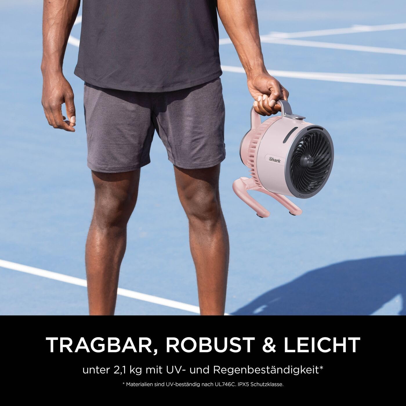 Nimm den Sprühnebel mit – drinnen oder draußen: Dank der HydroGo-Technologie von Shark, die ultrafeine Tröpfchen erzeugt, kannst du erfrischenden Sprühnebel sowohl drinnen als auch draußen genießen – für vollständige Kühlung, wo immer du bist. Robust für draußen, leise drinnen: Für Haltbarkeit im Freien mit Regenbeständigkeit und UV-Beständigkeit*. Drinnen sorgt der leise Lüfter für minimale Störung – perfekt zum Schlafen oder Arbeiten von zu Hause. * Materialien sind UV-beständig nach UL746C. Bis zu 20 Meter Reichweite: Kabelgebunden oder kabellos, drinnen oder draußen – der Luftstrom des Shark FlexBreeze HydroGo erreicht bei maximaler Geschwindigkeitsstufe bis zu 20 Meter.* *Basierend auf maximaler Geschwindigkeitsstufe Tragbarer und anpassbarer Lüfter: Kompakt und mit weniger als 2,1 kg Gewicht – für erfrischende Kühlung unterwegs. Zusätzlich kannst du aus einer Reihe von Zubehörteilen (separat erhältlich) wählen – darunter ein Autoladegerät und eine Tragetasche – und dein Set für jede Gelegenheit anpassen. Abmessungen: H: 29 cm, B: 21 cm, T: 22 cm. Gewicht: X kg. Farbe: Quartz Im Lieferumfang enthalten: Shark Ventilator, Ladekabel | قیمت یورویی : 149.99€