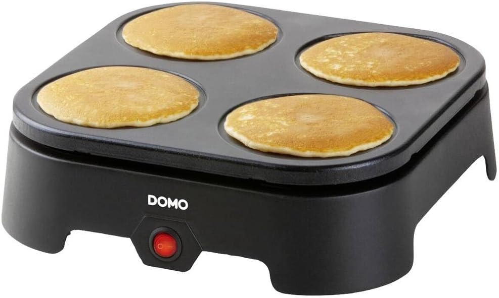 DOMO DO1094P Pancake-Maker Antihaftbeschichtung Schwarz لینک آمازون : https://www.amazon.de/dp/B0D4PLL3Z6?th=1&psc=1 برای ۴ عدد پنکیک کوچک (قطر ۱۱ سانتیمتر) دارای کلید روشن/خاموش روکش نچسب با کیفیت بالا