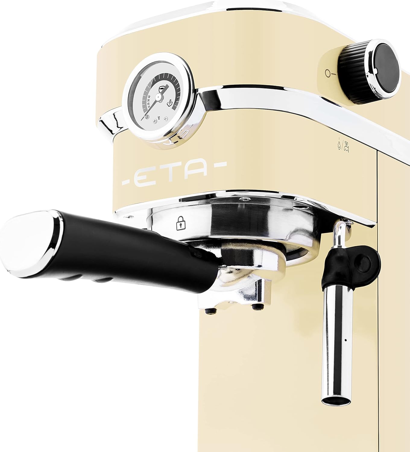 ETA Siebträger Storio I Beige I Espressomaschine I Milchschaumdüse I 20 Bar I 750ml Wassertank I 1350 Watt
