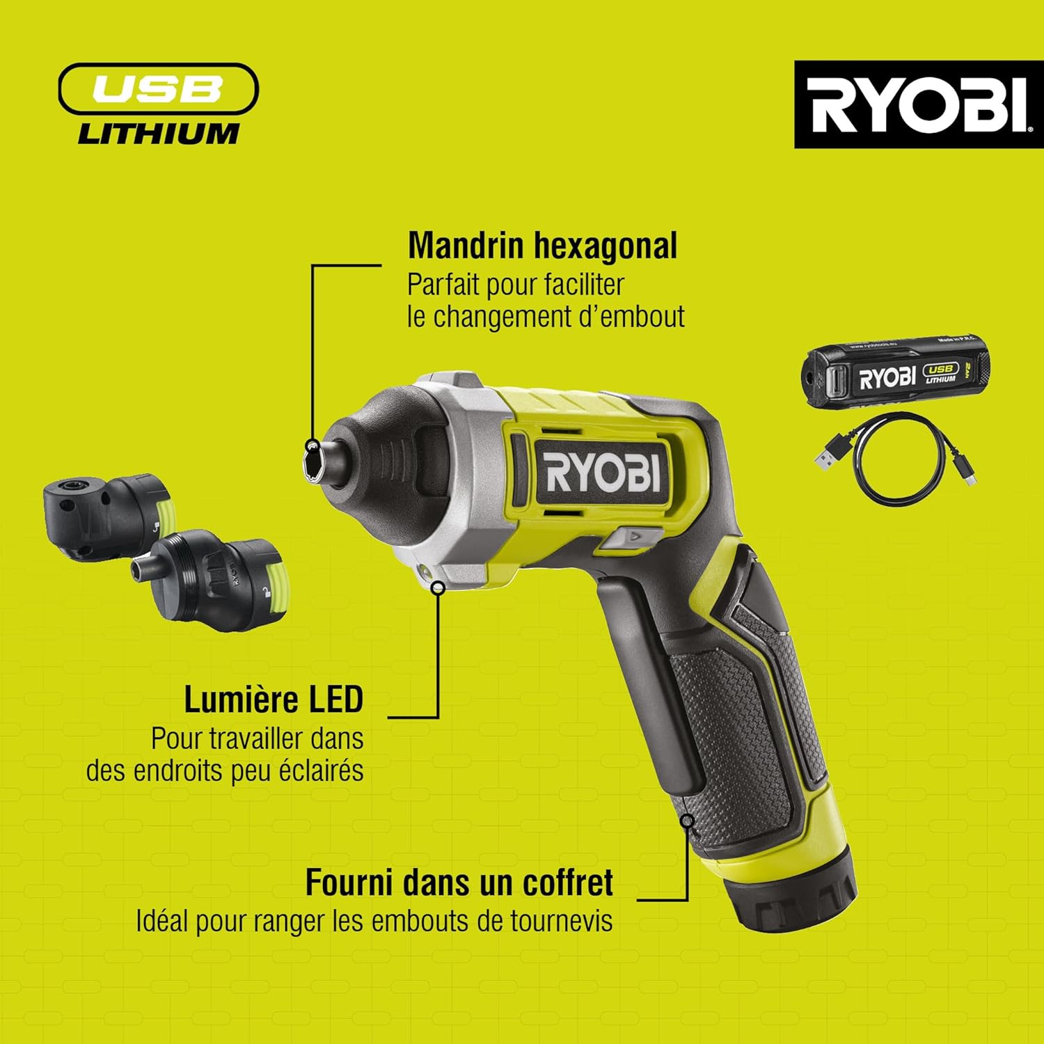 RYOBI 4 V USB-LITHIUM ERGO Akku-Schrauber RSD4-120TA2, inkl. 1 x 4 V 2,0 Ah Akku, USB-C Ladekabel und zwei Aufsätzen | قیمت یورویی 69€