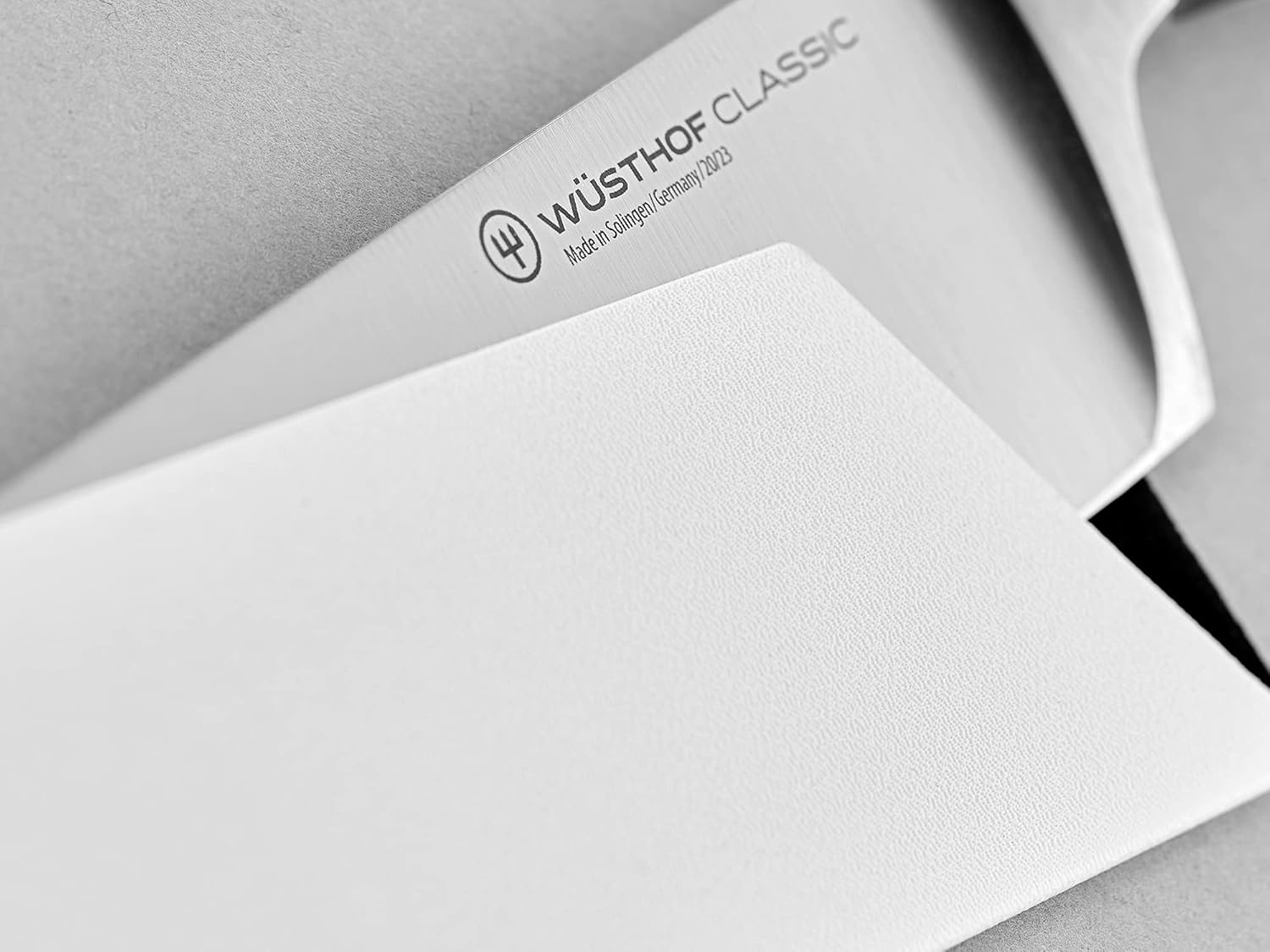 Produkt 1: Wüsthof Classic Messer überzeugen mit zeitlosem Design und zuverlässiger Leistung. Sie sind pflegeleicht und bieten mit dem großen Sortiment für jeden Food-Fan das richtige Koch-Werkzeug – z.B. dieses Allroundmesser für saubere, kraftvolle Schnitte Produkt 1: Dieses Profi-Kochmesser ist der Alleskönner in der Küche und eignet sich mit seiner breiten Klinge und der hohen Schneidkraft optimal zum Wiegen, Hacken, Schneiden, Formen, Drücken und Transportieren aller Lebensmittel – das wichtigste Messer für Köche Produkt 1: Die ultrascharfe Klinge wird aus einem Stück Wüsthof Stahl geschmiedet, auf 58° Rockwell gehärtet und wird im laserbasierten Schärfverfahren geschliffen, bevor sie per Hand ihren finalen Polierabzug erhält – und somit ihre extreme, langanhaltende Schärfe Produkt 1: Ein gutes Messer mit ergonomischem Griff aus Spezialkunststoff. Er ist mit Edelstahlnieten dreifach vernietet, fugenlos montiert und sehr hygienisch. Das optimal ausbalancierte Messer liegt gut in der Hand – für sicheres, ermüdungsfreies Schneiden Produkt 2: Breit & sicher: optimaler Klingenschutz für Messer mit breiter Klinge (bis zu 5 cm Breite und 20 cm Länge), z. B. Kochmesser, Santoku-Messer, Nakiri, Butcher Knife, Käsemesser – Schutzbereich: 200 x 50 mm Produkt 2: Schützt Messer & Mensch: Die Schneide verliert nicht nur durch den Gebrauch an Schärfe, sondern auch durch Beschädigung beim Transport oder der Lagerung in der Schublade. Die Messerhülle verhindert zuverlässig Kratzer an der Klinge und schützt die Finger Produkt 2: Weich & vielseitig: Der Universal Messerschutz aus Kunststoff schont die Klinge durch ein Futter aus Samt – das Messer bleibt zuverlässig fixiert und Kratzer werden verhindert – ideal auch zur Anwendung in der Messertasche, Messerrolle oder Kochmappe Produkt 2: Klein bis groß – der breite Kochmesser Klingenschutz ist bis 26 cm Länge erhältlich. Im Wüsthof Sortiment finden sie auch weitere Ideen zur Messer-Aufbewahrung für unterwegs (Rolltasche) oder in der Küche (Messerblock, Messerleiste, Schubladeneinsatz) | قیمت یورویی : 123.9€