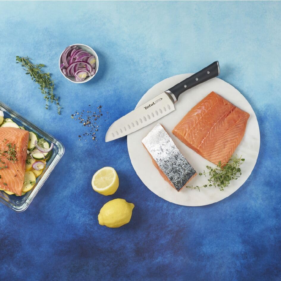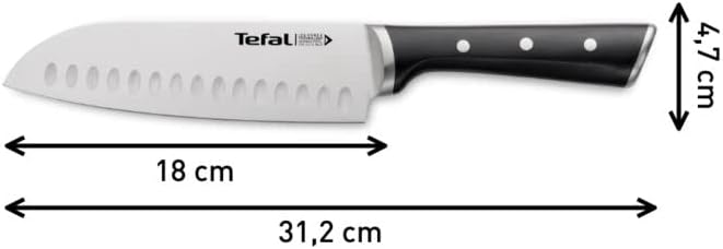 چاقوی سانتوکو Tefal Ice Force K23206 | 18 سانتی متر | حفاظت در برابر خوردگی | محافظ دست | فولاد ضد زنگ | فولاد ضد زنگ/مشکی