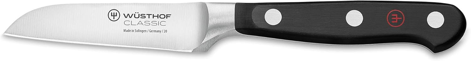 Die Wüsthof Classic Messerserie überzeugt mit zeitlosem Design und zuverlässiger Leistung. Sie ist pflegeleicht und bietet mit ihrem großen Sortiment für jeden Food-Fan das richtige Koch-Werkzeug – z.B. dieses vielseitige, kleine Küchenmesser Die kurze, gerade Klinge eignet sich optimal für saubere Schnitte und ist ideal zum Zerkleinern, Putzen, Schälen oder Dekorieren von Obst, Gemüse oder Hacken von Kräutern. So ist dieses kleine Messer ein nützliches, sehr scharfes Allzweckmesser Die ultrascharfe Klinge wird aus einem Stück Wüsthof Stahl geschmiedet, auf 58° Rockwell gehärtet und wird im laserbasierten Schärfverfahren geschliffen, bevor sie per Hand ihren finalen Polierabzug erhält – und somit ihre extreme, langanhaltende Schärfe Ein gutes Küchenmesser mit rutschfesten Griffen aus Spezialkunststoff. Sie sind mit Edelstahlnieten dreifach vernietet, fugenlos montiert und sehr hygienisch. Der ergonomische Griff liegt gut in der Hand und unterstützt ermüdungsfreies, sicheres Schneiden Dieses rundum stabile Qualitäts-Messer von Wüsthof ist ideal ausbalanciert, unterstützt sicheres Arbeiten und ist somit ideal für die tägliche Küchenarbeit. Ein Markenmesser eines echten Traditionsunternehmens: Made in Germany – geschmiedet in Solingen | قیمت یورویی : 69.81€