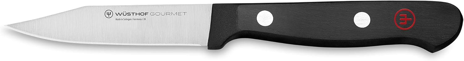 Mit Gourmet hat Wüsthof Messer Basics im Angebot, die als scharfe Küchenmesser nicht nur durch richtig gute Qualität und einen günstigen Preis begeistern, sondern als zuverlässige Solinger Messer – so wie dieses Spezialmesser für Gemüse und mehr Kleines, vielseitiges Messer – mit seiner schlanken und spitzen Klinge ist das Universalmesser für fast alle Aufgaben in der Küche der ideale Begleiter – als Gemüse- und Obstmesser, Schälmesser, Kräutermesser oder Spickmesser für kurze Schnitte an Fleisch Scharf und stabil – die ausgelaserte Messerklinge wird in 35 Arbeitsgängen so verarbeitet, dass sie durch eine Härte von 56° Rockwell und der Verlängerung unter dem Griff mit der Stabilität und Schärfe geschmiedeter Profi Küchenmesser vergleichbar ist Agil und spülmaschinengeeignet – der ergonomische Griff aus Spezialkunststoff ist fugenlos vernietet und absolut pflegeleicht. Dank des geringen Gewichts ermöglicht das Kochmesser Profi Messer präzises, schwungvolles Schneiden – also viel Spaß in der Küche Wüsthof Gourmet überzeugt durch ein sehr gutes Preis-Leistungsverhältnis und ist als Starterset für den Privat-Haushalt ebenso interessant wie als Grundausstattung für die Gastronomie (Profiküche). Küchen Messer – Made in Germany, hergestellt in Solingen | قیمت یورویی : 19.9€