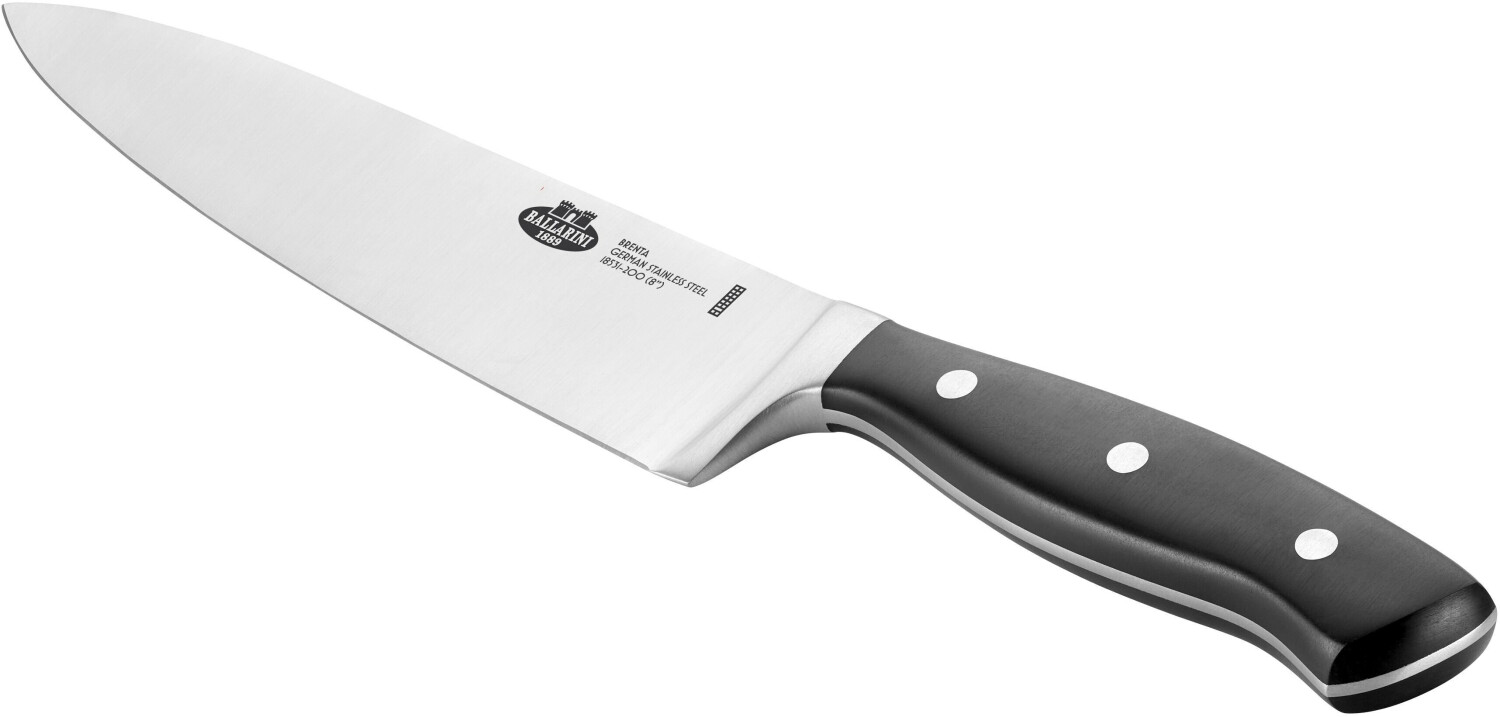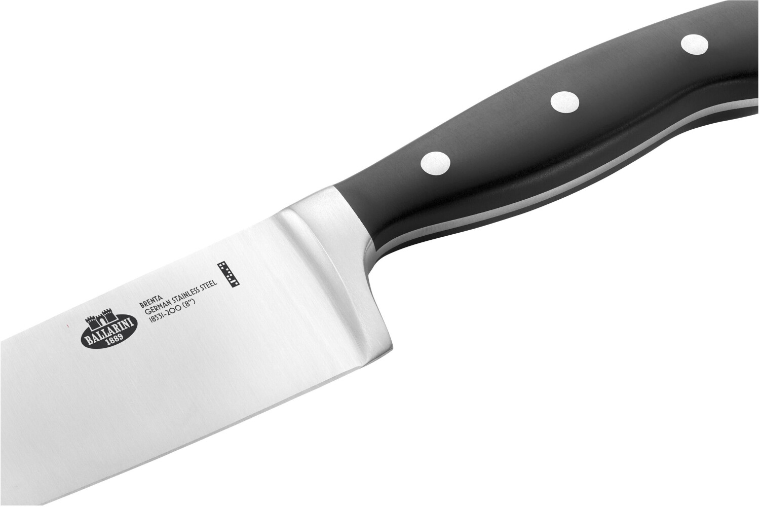 چاقوی سرآشپز 20 سانتیمتری zwilling ballarini brenta، انتخابی مناسب برای آشپزهایی است که به کیفیت و دوام اهمیت میدهند. این چاقو دارای تیغهای فولادی ضد زنگ است که با فناوری FRIODUR تقویت شده و دوام بالایی در برابر خوردگی و زنگزدگی دارد. یکی از ویژگیهای این محصول، تیزکن دستی همراه آن است که برای حفظ تیزی تیغه، در کمترین زمان ممکن به شما کمک میکند. طراحی دسته بهگونهای است که کمترین فشار را به دست وارد کند و کنترل بهتری را هنگام برش ارائه دهد.