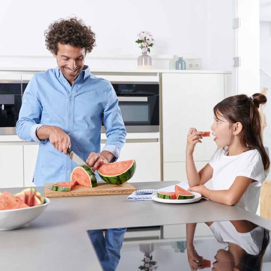 Tefal Ice Force Kochmesser K23202, 20 cm Klinge, Korrosionsschutz, Handschutz, Edelstahl, schwarz لینک آمازون : https://www.amazon.de/dp/B07BCPNGDJ?th=1&psc=1 فناوری نیروی یخ: پس از گرم شدن، تیغه چاقو برای مقاومت بیشتر و محافظت در برابر خوردگی در دمای -120 درجه سانتیگراد قرار می گیرد. فولاد ضد زنگ ساخت آلمان: بادوام تر، مقاوم تر و پایدارتر محافظت از دست: ایمنی حتی بیشتر در هنگام استفاده طول کل: 33 سانتی متر، طول تیغه: 20 سانتی متر محدوده تحویل: چاقوی آشپز Ingenio Ice Force 20 سانتی متری