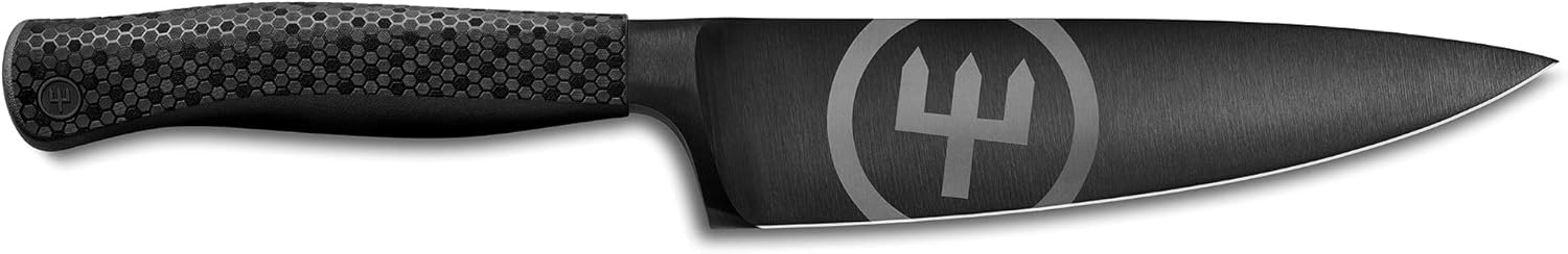Dieses innovative Wüsthof Performer Messer verbindet einzigartiges Design mit purer Dynamik. Das komplett schwarze Universal-Messer aus Solingen (Solingen-Messer) ist extrem robust und super schnitthaltig – ein richtig gutes Messer für ideale Schnitte Das kürzere Chefmesser (ultrascharfe Klinge, 16 cm) ist ein agiles Allzweck-Messer für präzise Schnitte an kleineren Lebensmitteln. Dank Lotus-Effekt hat die DLC-Klinge eine besonders geringe Reibung, ist schmutzabweisend und langlebig Einzigartige Messerklinge: Die diamantähnliche Beschichtung erhöht die Rockwell-Härte des Edel-Klingenstahls auf extreme 104° HRC – dadurch ist die rostfreie Klinge äußerst unempfindlich gegen Kratzer, Hitze sowie Säuren, Basen und Stärke Hexagon Power Grip: Die neuartige, ergonomische Griff-Konstruktion mit versetzter Antirutsch-Wabenstruktur garantiert eine extreme Kontrolle. So halten Sie das Allround-Messer (Profi-Küchenmesser) auch bei anspruchsvollen Arbeitsbedingungen fest im Griff Ein professionelles Kochmesser (Profi-Messer), das Design, Innovation und Funktionalität optimal verbindet – ideal für kulinarisch ambitionierte Food-Fans und Profi-Köche. Das Messer für den idealen Schnitt – Made in Germany, geschmiedet in Solingen | قیمت یورویی : 216.2€