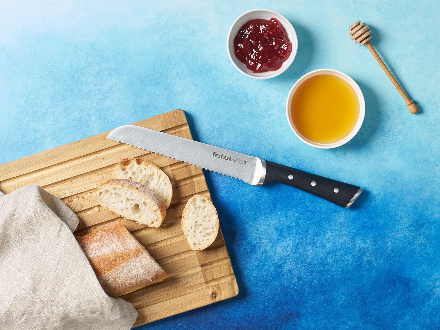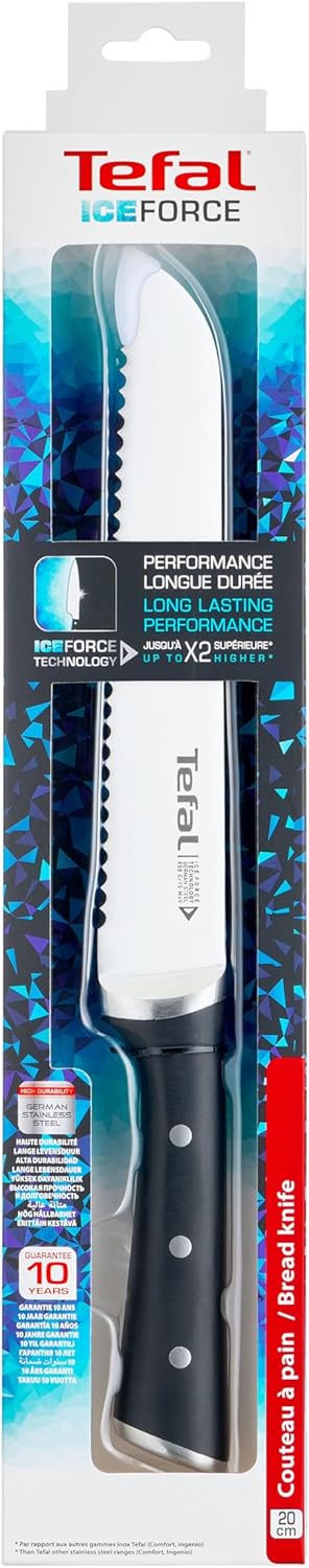 Tefal Ice Force K23204 Brotmesser 20 cm, Handschutz, Langlebiges Brotschneidemesser, Korrosionsschutz, Made in Germany Edelstahl, Schwarz 20 cm Brotmesser | قیمت یورویی 21.99€