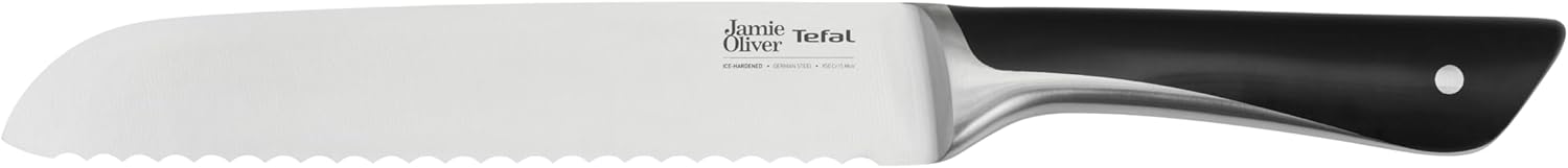 چاقوی نان Jamie Oliver by Tefal K26703 20 سانتی متر، عملکرد برش بالا، طراحی متمایز، تیغه های مستحکم و بادوام، چاقوی آشپزخانه استیل ضد زنگ، مشکی