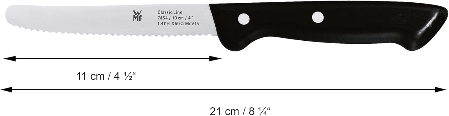WMF Classic Line Brotzeitmesser 21 cm, Brötchenmesser Doppelwellenschliff, Frühstücksmesser aus Spezialklingenstahl, Kunststoffgriff, Klinge 11 cm Einzelmesser 21 cm | قیمت یورویی 19.99€