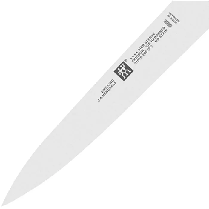 چاقو تکی برش ژامبون zwilling vier sterne یکی از ابزارهای حرفهای آشپزی است که برای برشهای ظریف و یکنواخت طراحی شده است. تیغه این چاقو از فولاد ضد زنگ FRIODUR ساخته شده که طی فرآیند خاصی سخت شده و دوام بالایی در برابر خوردگی و زنگزدگی دارد.