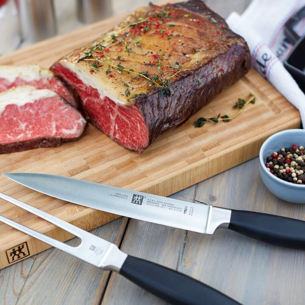 چاقو تکی برش گوشت zwilling vier sterne، با تیغه فولادی ضد زنگ و طراحی ارگونومیک، انتخابی حرفهای برای برشهای نرم و یکنواخت گوشت است. این چاقو با لبه تیز و متعادل، کنترل بالایی در هنگام برش ارائه میدهد و از تغییر بافت مواد غذایی جلوگیری میکند.
