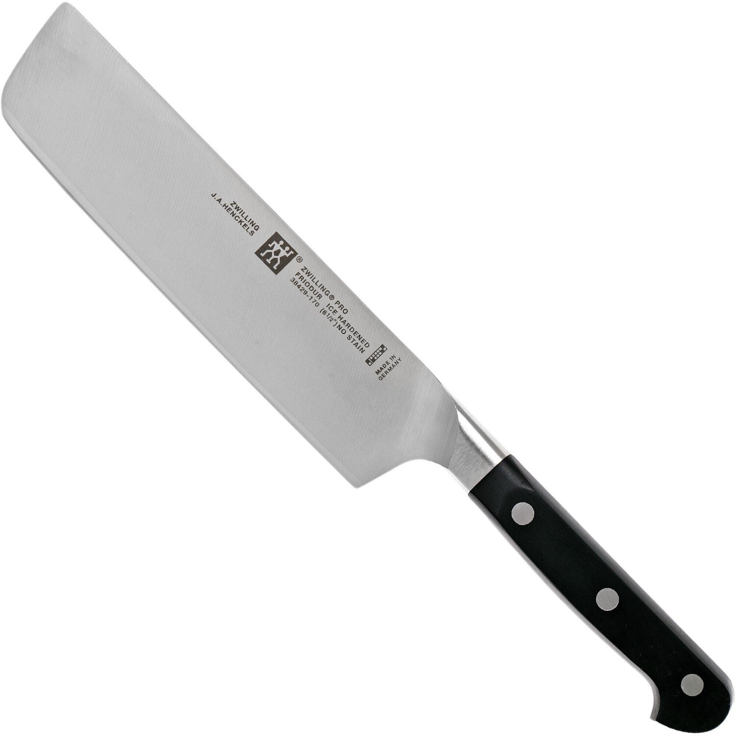 چاقو تکی ناکیری zwilling pro، یک چاقوی سنتی ژاپنی است که برای برشهای دقیق و یکنواخت سبزیجات طراحی شده است. تیغه این چاقو از فولاد سختکاری شده FRIODUR ساخته شده که طی فرآیند سختکاری ویژه زولینگ به سختی 57 راکول میرسد. این ویژگی باعث میشود که تیغه چاقو دوام بالایی داشته باشد و در برابر خوردگی و زنگزدگی مقاوم باشد.