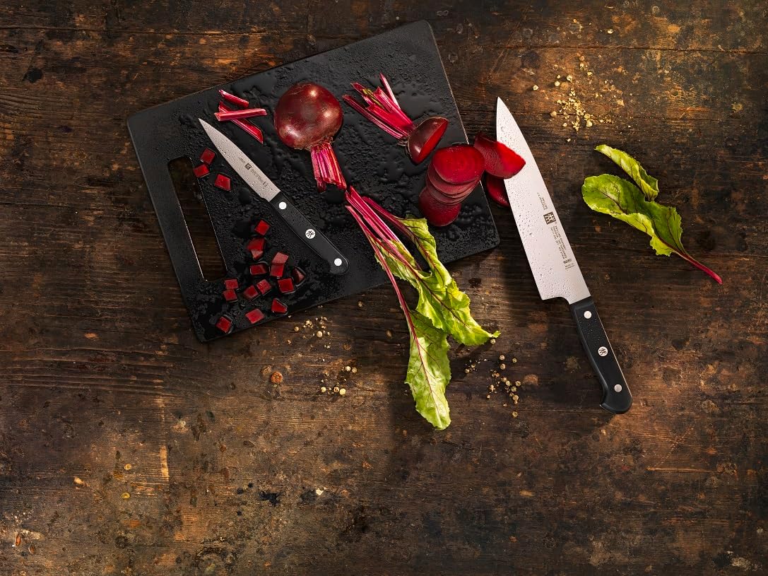 چاقو تکی همهکاره zwilling gourmet، یکی از کوچکترین و درعینحال پرکاربردترین چاقوهای آشپزی است که برای برشهای دقیق و تزئین غذا طراحی شده است. تیغه این چاقو از فولاد ضد زنگ FRIODUR ساخته شده که طی فرآیند سختکاری ویژهای مقاوم شده و دوام بالایی در برابر خوردگی و زنگزدگی دارد.