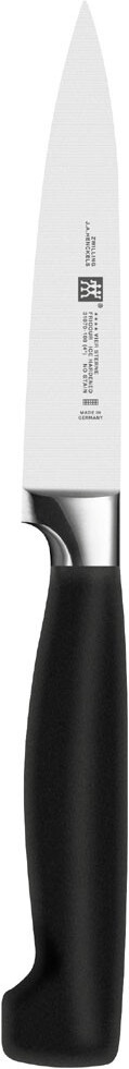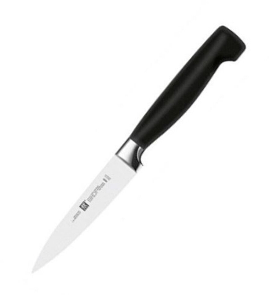 چاقو تکی همهکاره zwilling vier sterne با تیغه فولادی ضد زنگ و دسته ارگونومیک، یک ابزار کاربردی برای برش دقیق میوه، سبزیجات و تزئین غذا در آشپزخانههای حرفهای و خانگی است.