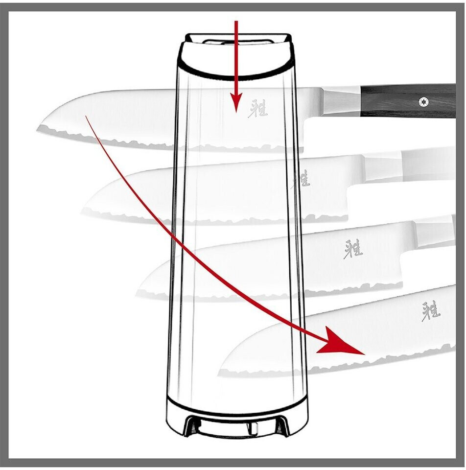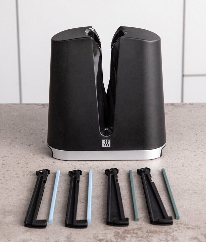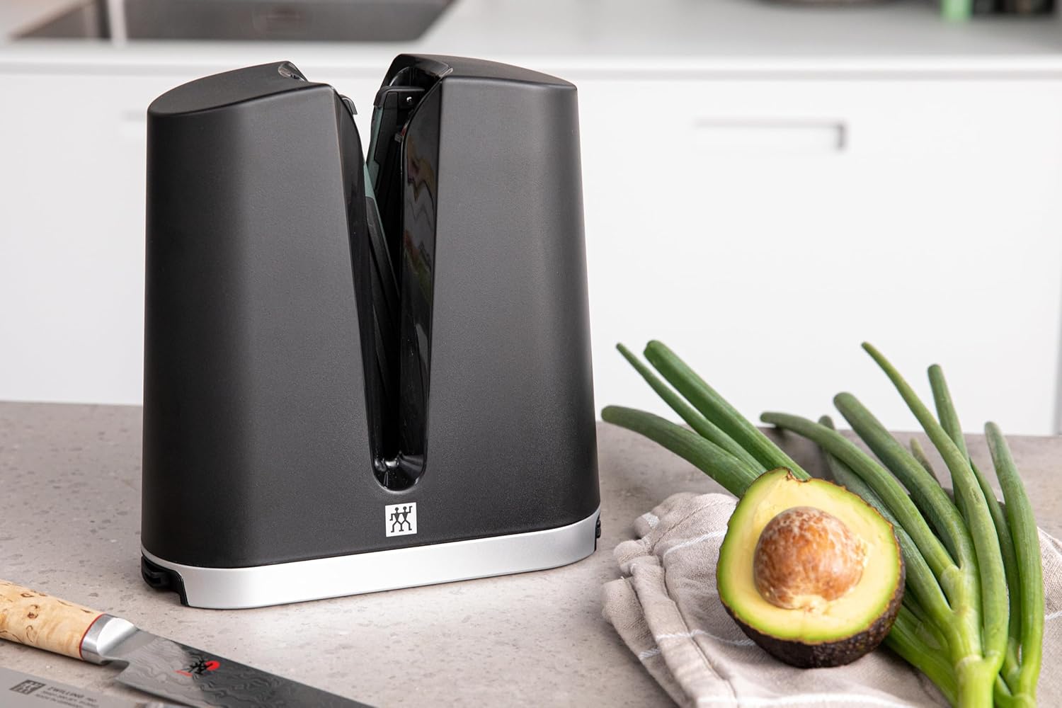 چاقو تیزکن زولینگ مدل V-Edge یک ابزار حرفهای و کارآمد برای افزایش دوام و تیزی چاقوهای آشپزخانه است. سیستم تیزکن V شکل آن، باعث میشود لبههای چاقو بهطور دقیق و یکنواخت تیز شوند. این مدل با تیغههای سرامیکی مقاوم، بدون آسیب زدن به تیغه، چاقو را در کمترین زمان تیز کرده و عملکرد بهتری به آن میبخشد. طراحی ارگونومیک و وزن مناسب، استفاده آسانی را برای کاربران خانگی و سرآشپزهای حرفهای فراهم کرده است.