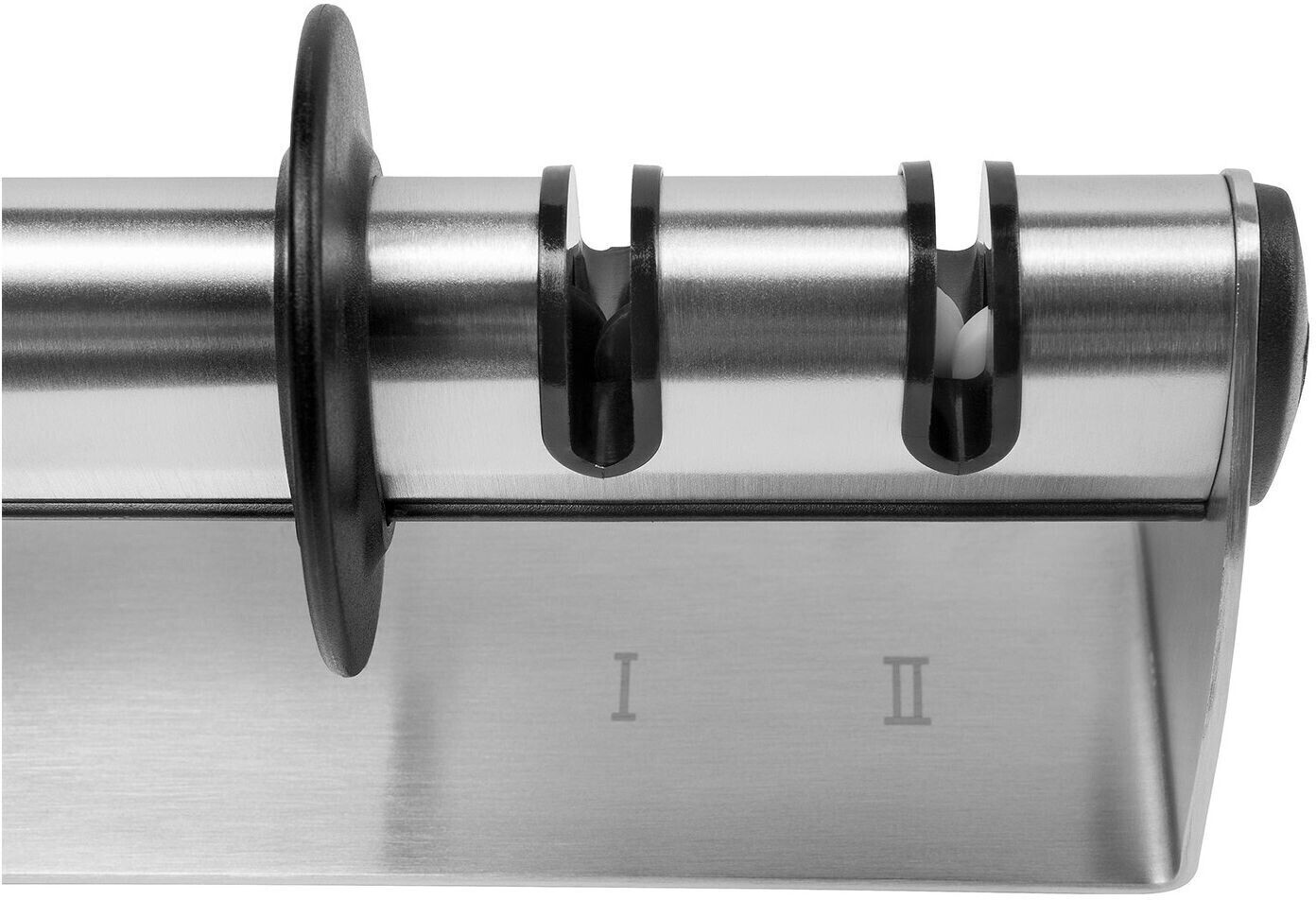 چاقو تیزکن زولینگ مدل Twinsharp Select ابزاری حرفهای و کارآمد برای تیز کردن انواع چاقوهای آشپزخانه است. این دستگاه از سیستم تیزکن دو مرحلهای بهره میبرد که باعث میشود ابتدا لبه چاقو اصلاح شده و سپس صیقل نهایی برای برندگی بیشتر انجام شود. تیغههای استیل ضد زنگ با دوام بالا، عملکردی یکنواخت و ماندگار ارائه میدهند. دسته ارگونومیک و بدنه مقاوم، استفاده از این دستگاه را راحتتر کرده و ایمنی را هنگام کار افزایش میدهد.