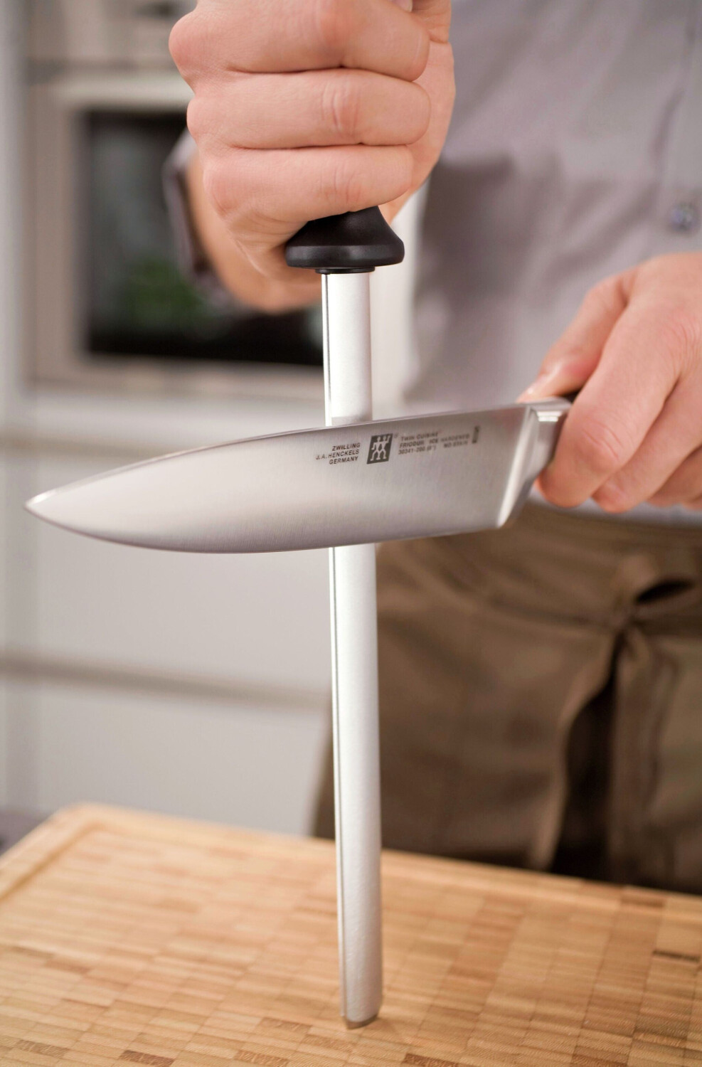 چاقو تیزکن میلهای زولینگ مدل Wetzstahl با سطحی پوشیده از الماس صنعتی، گزینهای حرفهای برای تیز کردن انواع چاقوهای آشپزخانه است. طراحی میلهای شکل و طول 26 سانت باعث میشود که کاربران بتوانند تیغههای چاقو را بهصورت یکنواخت و دقیق تیز کنند. پوشش الماسه، امکان تیز کردن سریع و نرم را فراهم کرده و بدون سایش بیش از حد، چاقوها را مانند روز اول برنده میکند. دسته ارگونومیک و ضد لغزش نیز ایمنی و کنترل بیشتری در هنگام استفاده فراهم میآورد.