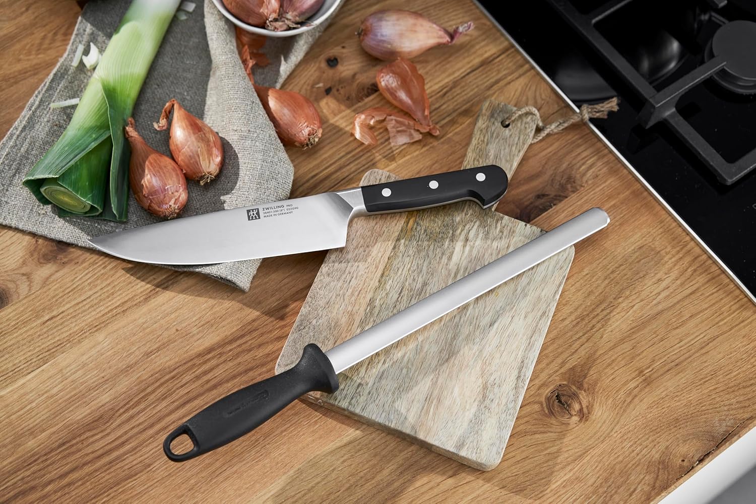 چاقو تیزکن میلهای زولینگ با پوشش الماسه و طول 26 سانت، تیز کردن سریع و یکنواخت چاقوها را ممکن میسازد. طراحی ارگونومیک و دسته ضد لغزش، ایمنی و کارایی بالایی را تضمین میکند.