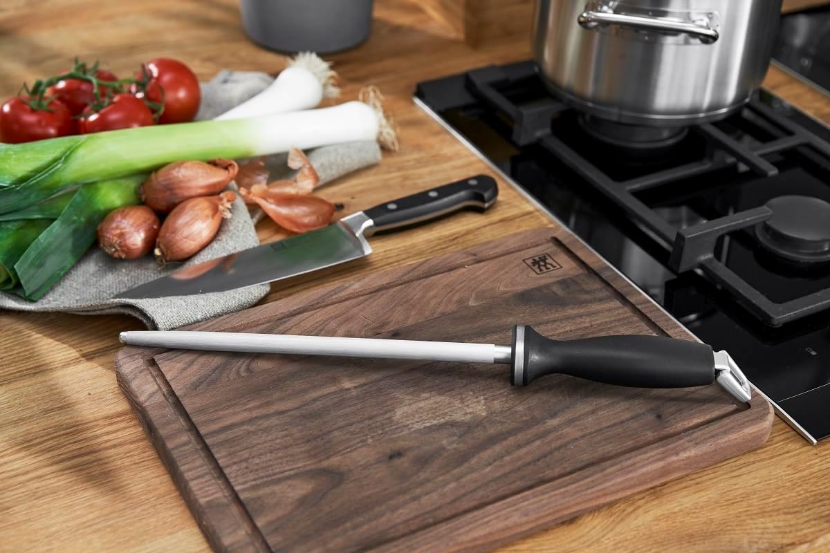 چاقو تیز کن زولینگ مدل Vier Sterne با بدنه فولادی سختکاری شده و طول 26 سانت، ابزاری حرفهای برای تیز کردن سریع و یکنواخت چاقوهای آشپزخانه است. دسته ارگونومیک و ضد لغزش، ایمنی بیشتری را هنگام استفاده فراهم میکند.