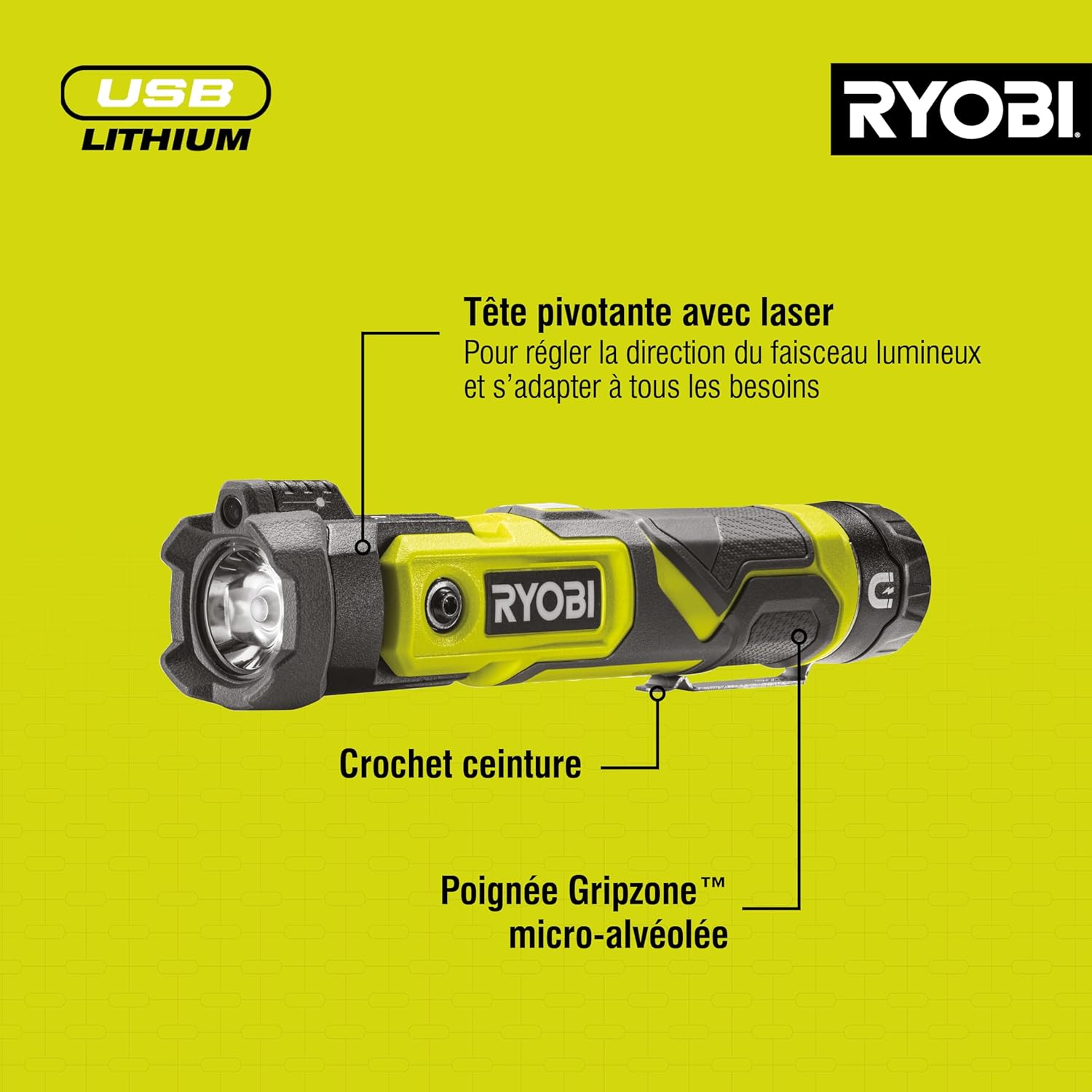 چراغ قوه شارژی RYOBI 4 V USB RLP4-0، چرخان، لومن 640، بدون باتری و کابل شارژ