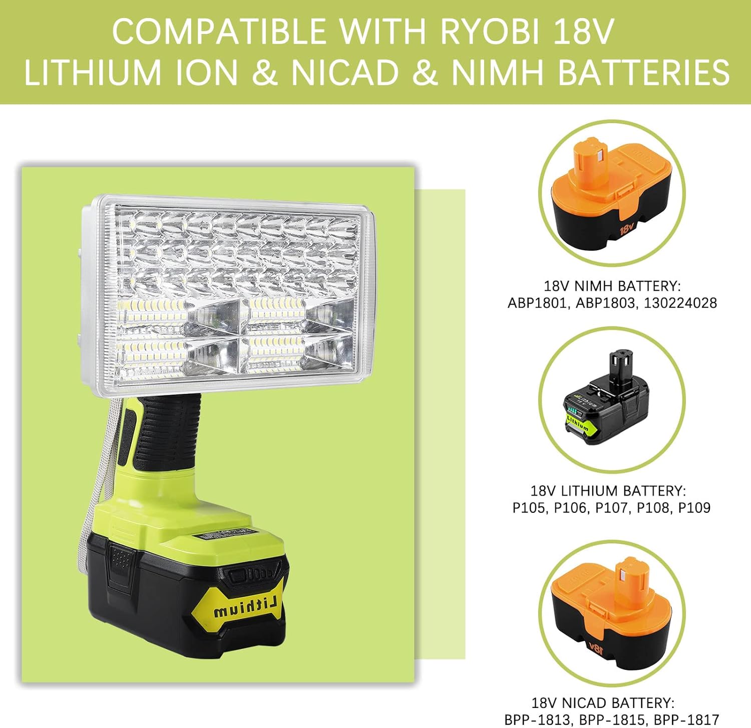 3300LM kabellose LED-Arbeitslichttaschenlampen Powered by Ryobi 18-Volt ONE + Lithium-Ionen-NiCd-NiMh-Batterien P197 P108 YEX-BUR 30 W Handtaschenlampen Tragbare Strahler | قیمت یورویی 68.99€