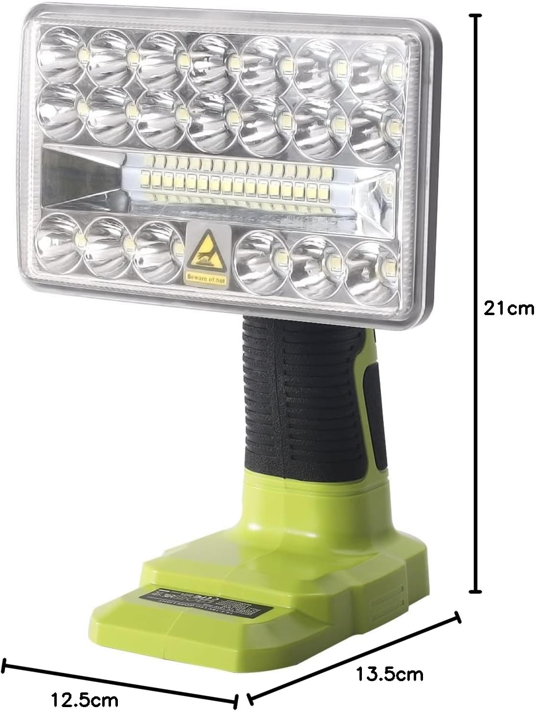 【BETRIEBEN DURCH RYOBI-BATTERIE】Kabellose LED-Arbeitsleuchte, kompatibel mit Ryobi 18V ONE + Lithium-Ionen-NiCd-NiMh-Batterien P102 P103 P104 P105 P107 P108 P109 P190 und mehr. (Batterie nicht enthalten). 【 LED-ARBEITSLEUCHTE MIT 3 EINSTELLUNGEN】 ► Drücken Sie die Schaltertaste zum ersten Mal kurz, die mittlere Reihe der LED-Leuchten leuchtet auf. ►Beim zweiten Mal ist die mittlere Reihe der LED-Leuchten ausgeschaltet und die LED-Leuchten auf beiden Seiten leuchten. ►Beim 3. Mal leuchten alle LED-Leuchten. LANGE DRÜCKEN, UM DAS LICHT AUSZUSCHALTEN. 【FLEXIBLES DESIGN】 Der um 110 Grad schwenkbare Kopf bietet Vielseitigkeit für die Beleuchtung von Arbeitsflächen. Licht, das in mehrere Richtungen projiziert werden soll. Die Belüftungsöffnungen verbessern die Wärmeableitungseffizienz für eine längere Lebensdauer erheblich. Die praktische Trageschlaufe erleichtert das Mitnehmen. 【ZUVERLÄSSIGKEIT】 Die wiederaufladbare YEX-BUR-Arbeitsleuchte wurde CE- und FCC-zertifiziert, um strenge Sicherheitsteststandards zu erfüllen. Bietet mehrfachen Schutz vor Überlastung, Überstrom, Überhitzung und Niederspannung für Sie und Ihre Geräte. 【BREITE ANWENDUNGEN】 Ryobi Außenstrahler 18 V kann in dunklen Arbeitsbereichen, Kellerräumen, Tiefgaragen, beim Wandern, Camping, Jagen, Erkunden, Grillen, Ausführen von Hunden und Notleuchten für Stromausfall zu Hause usw. verwendet werden. | قیمت یورویی : 42.99€