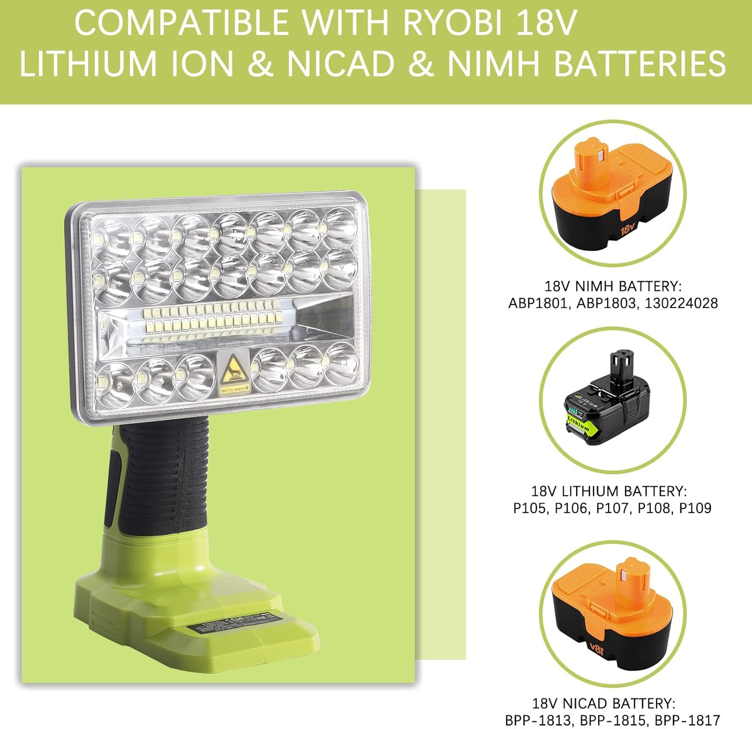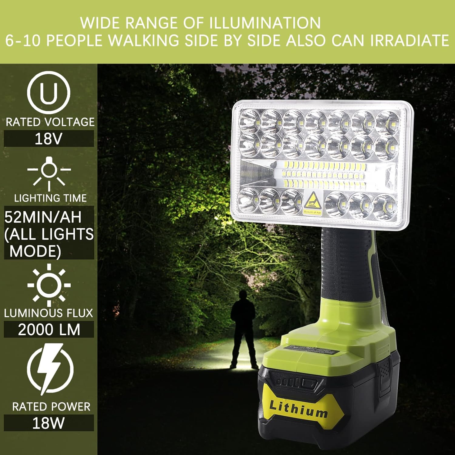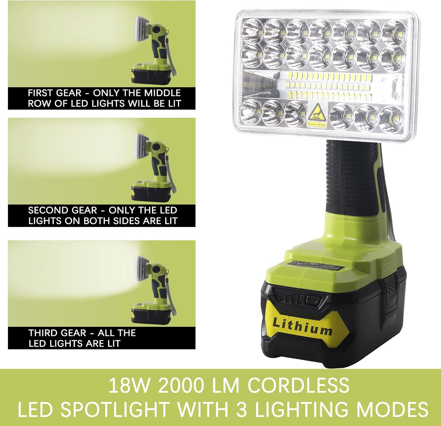 YEX-BUR 2000LM kabellose LED-Arbeitslichttaschenlampen Powered by Ryobi 18-Volt ONE + Lithium-Ionen-NiCd-NiMh-Batterien P197 P108 18W Handtaschenlampen Tragbare Strahler | قیمت یورویی 42.99€