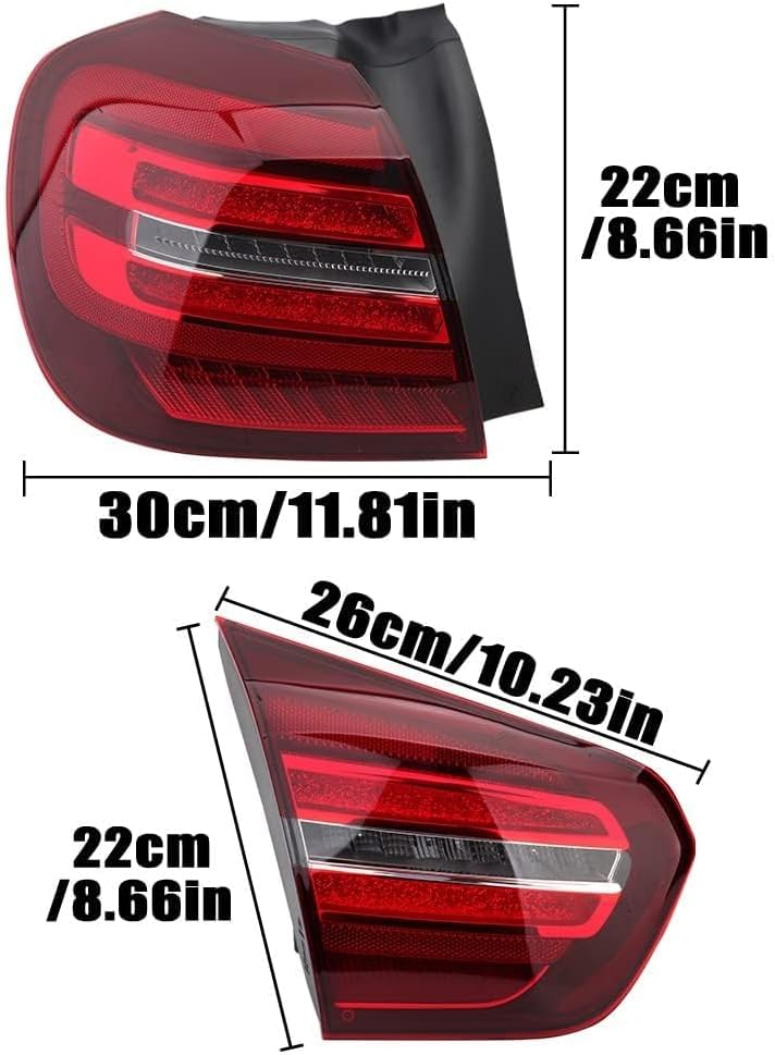 【Anwendbare Modelle】 Autorücklichter für Mercedes Benz GLA X156 2013-2017. Bitte bestätigen Sie vor dem Kauf, ob Ihr Modell anwendbar ist. 【Hohe Qualität】 Das hintere Rücklicht besteht aus hochwertigen Materialien mit schneller Wärmeableitung und langer Lebensdauer. Durch die gute Abdichtung ist es staub- und wasserdicht und eignet sich für regnerische, neblige und verschneite Tage. 【Superhell】 Dieses Anhängerrücklicht ist superhell und bietet hervorragende Helligkeit und klare Sicht beim Fahren im Dunkeln, was Ihre Fahrsicherheit verbessert. 【Bedeutung】 Wir wissen, wie wichtig Licht ist, insbesondere in der dunklen Nacht mit schlechter Sicht können Sie unser Rücklicht wählen. 【Kundendienst】 Wenn Sie Fragen zu unseren Produkten haben, kontaktieren Sie uns bitte. Wir werden Ihnen innerhalb von 24 Stunden antworten und Ihnen eine zufriedenstellende Antwort geben. | قیمت یورویی : 128.99€