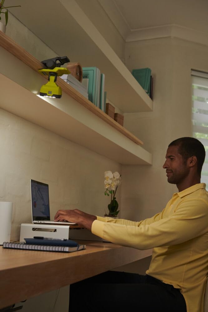 RYOBI 4 V USB-LITHIUM Akku-Klemmleuchte RLC4-0, 1.000 Lumen, magnetisch, 3 Leuchtstufen, ohne Akku und Ladegerät لینک آمازون : https://www.amazon.de/dp/B0CTT9S34X?th=1&psc=1 نورافکن با باتری برای روشن کردن مناطق بزرگتر ایده آل است سه سطح نور با حداکثر 750 لومن و یک سر نور گردان و قابل چرخش امکان تراز متغیر نور را بدون تنظیم کل لامپ فراهم می کند. سازگار با سیستم RYOBI LINK گیره مغناطیسی یکپارچه با عرض 32 میلی متر، چسبندگی ایمن و محکم روی لبه میز ایجاد می کند چراغ گیره توسط یک باتری لیتیومی 4 ولت USB تغذیه می شود که با سایر ابزارهای موجود در این محدوده سازگار است.