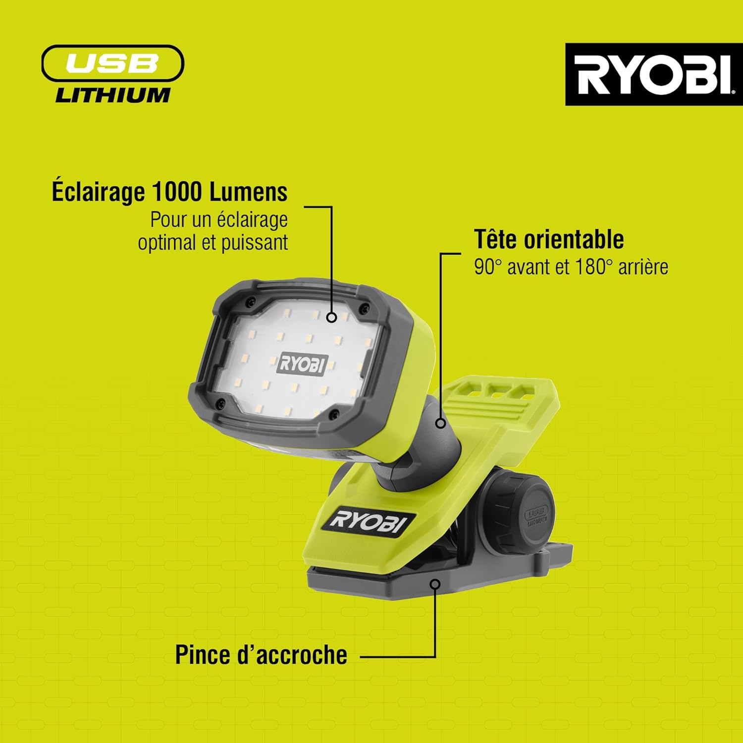 RYOBI 4 V USB-LITHIUM Akku-Klemmleuchte RLC4-0, 1.000 Lumen, magnetisch, 3 Leuchtstufen, ohne Akku und Ladegerät | قیمت یورویی 55.92€