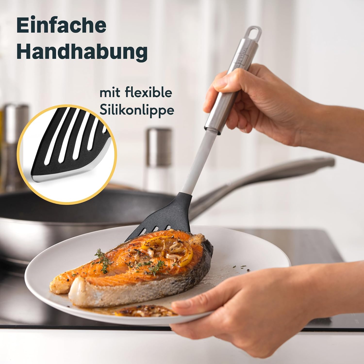SILBERTHAL Fischwender mit Silikon - Ideal für Fisch, Spiegelei, uvm. - Hitzebeständiger Wender - Spülmaschinengeeignet | قیمت یورویی 9.95€