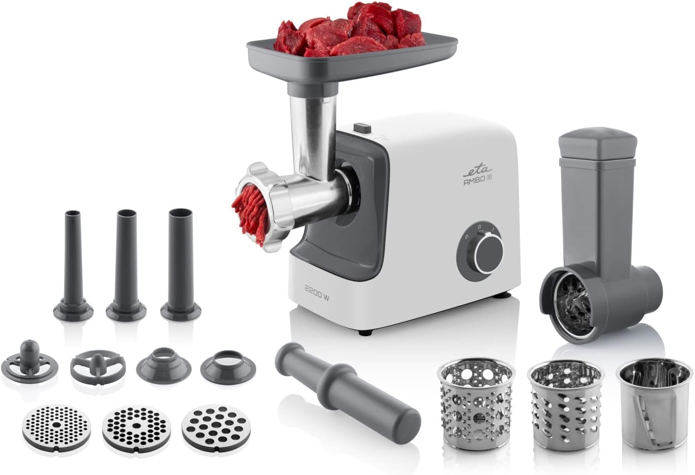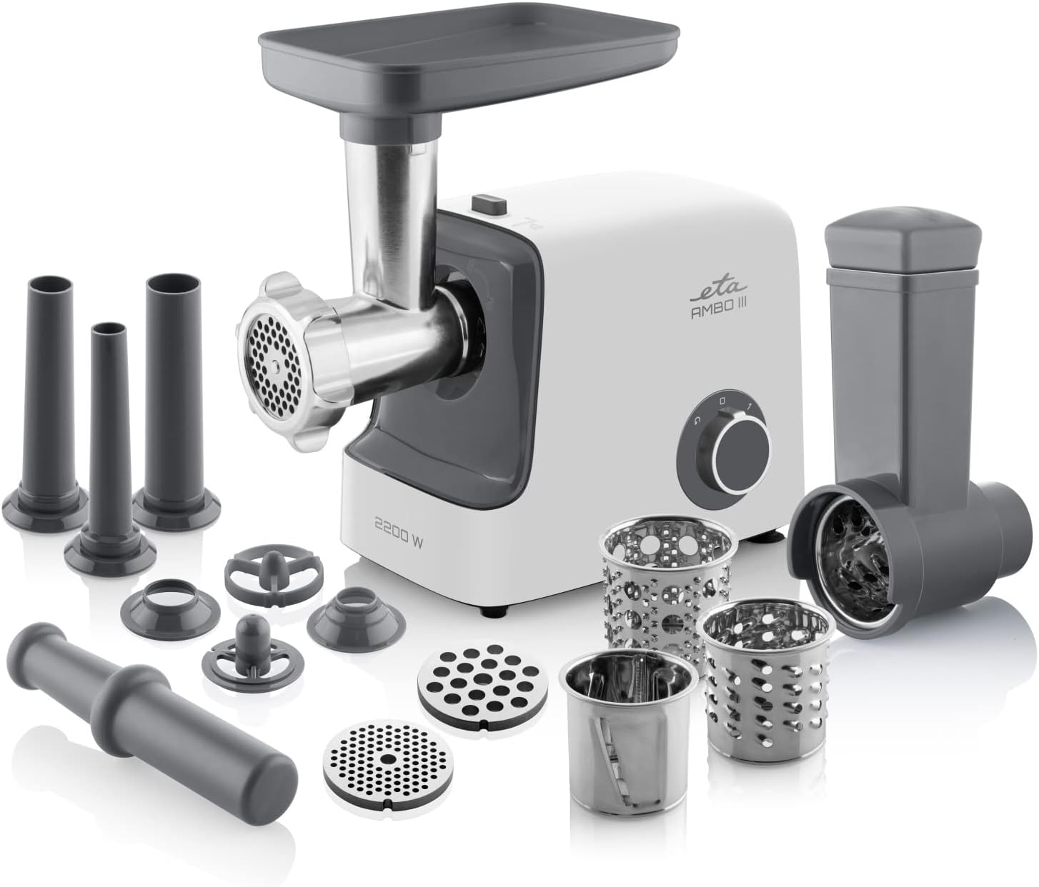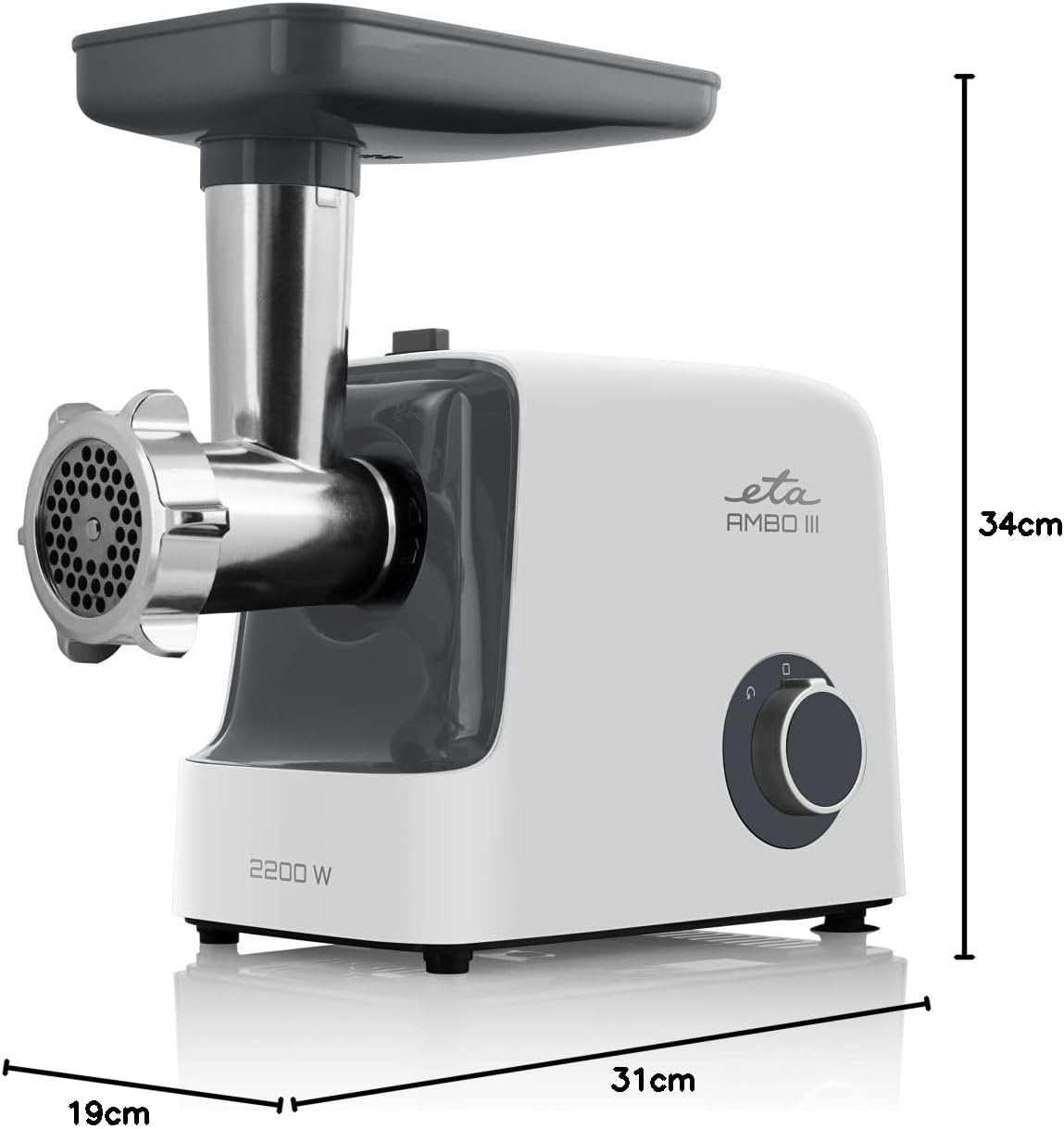 ETA elektrischer Fleischwolf Ambo 3 I 2200W I Mahlt Fleisch I Füllt Würste I Schneidet Gemüse I Kebbe Aufsatz | قیمت یورویی 101.42€