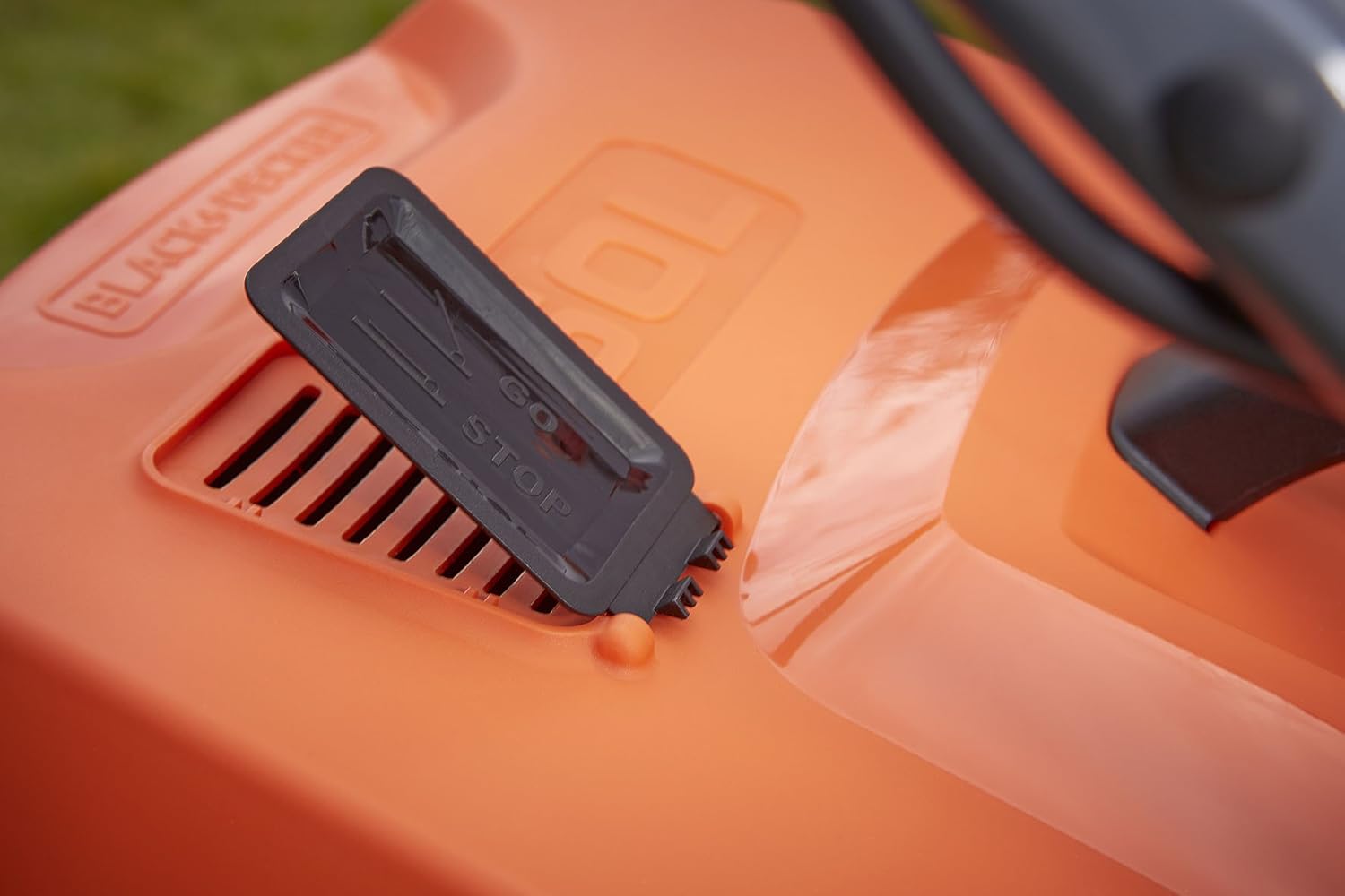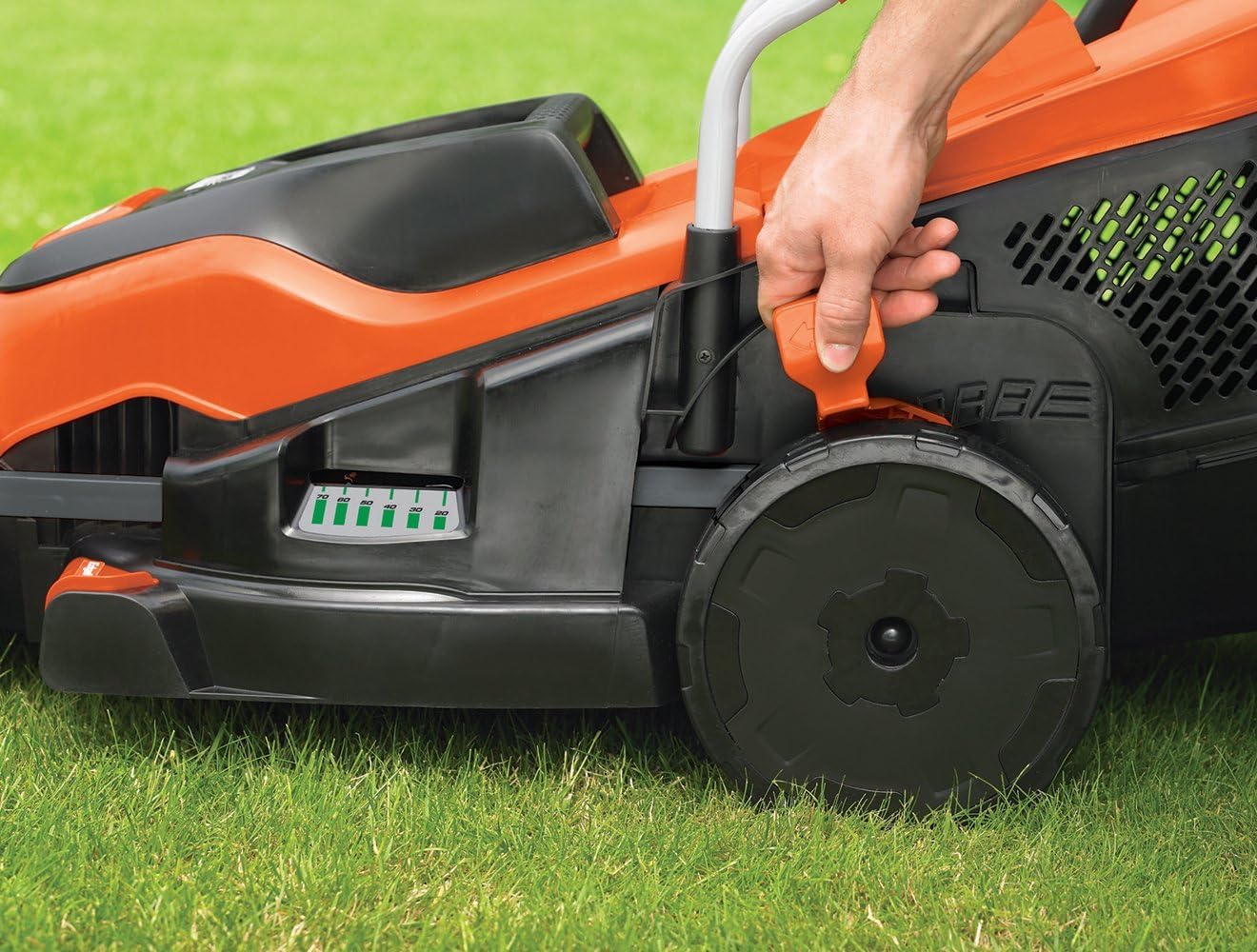 چمن زنی برقی Black+Decker 1800W Edge-Max EMAX42، عرض برش 42 سانتی متر، فناوری E-Drive و عملکرد Compact & Go، نارنجی مشکی