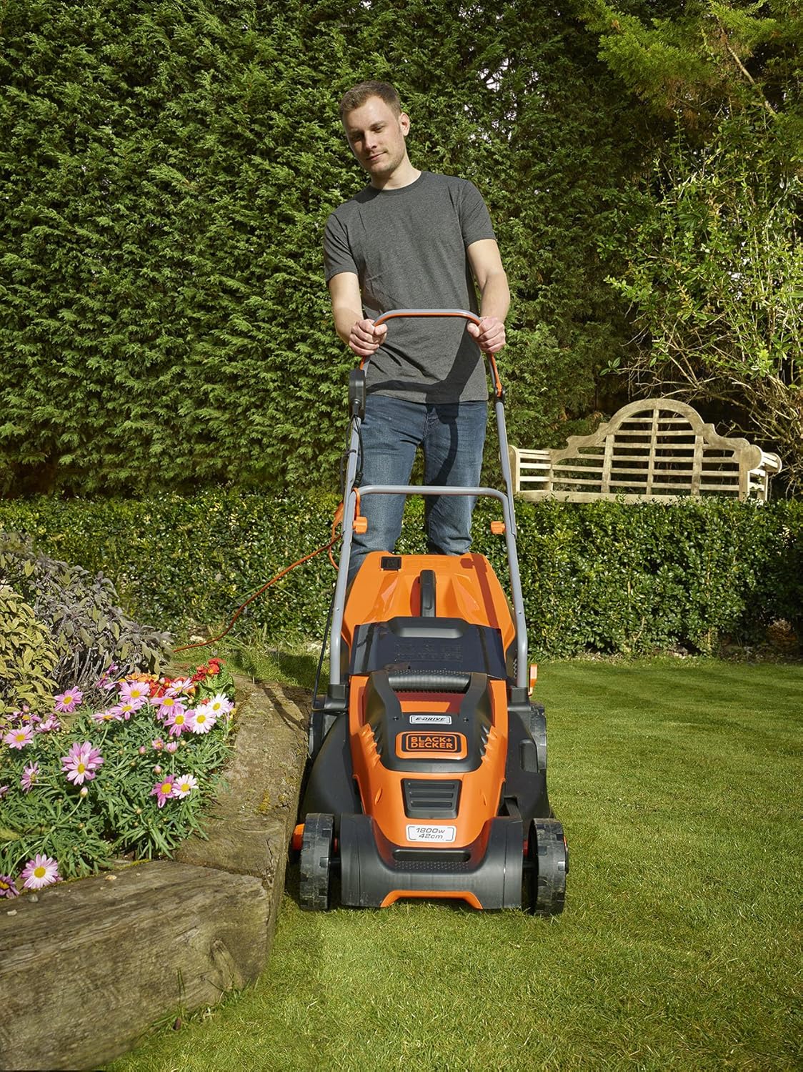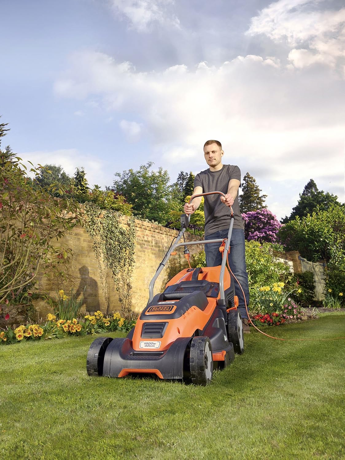 Black+Decker 1800W Edge-Max Elektro-Rasenmäher EMAX42, 42 cm Schnittbreite, E-Drive Technologie und Compact & Go Funktion, schwarz orange | قیمت یورویی 241.58€