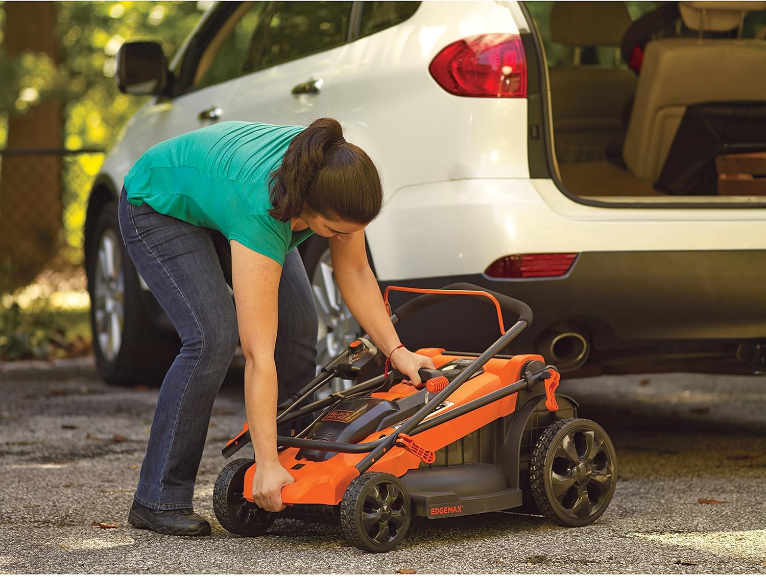 Black+Decker 2000 W 3-in-1 Elektro-Rasenmäher, 48 cm Schnittbreite, 50 L Grasfangbehälter, 1 Stück, LM2000 لینک آمازون : https://www.amazon.de/dp/B01N6WN3WV?th=1&psc=1 ماشین چمن زنی برقی قدرتمند 2000 واتی با عرض برش 48 سانتی متر برای چمن های بزرگ تا 600 متر مربع عملکرد 3 در 1: حالت علف گیر برای حداقل دوباره کاری، تخلیه جانبی برای چنگ زدن آسان یا حالت مالچ پاشی برای غنی سازی خاک با مواد مغذی علف گیر 50 لیتری: ظرفیت زیاد و تخلیه آسان تنظیم ارتفاع برش مرکزی 7 جهته (38 - 100 میلی متر) تنها با یک دسته EdgeMax: برای چمن زنی بسیار نزدیک به لبه، دسته های تاشو و دسته های حمل برای ذخیره سازی و حمل و نقل آسان