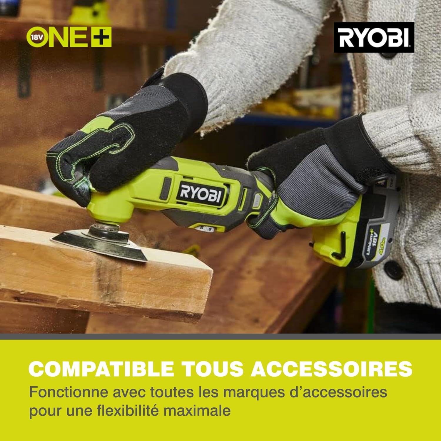 RYOBI 18 V ONE+ Akku-Multitool RMT18-0 (Oszilationswinkel 3,0°, Schwingzahl 0-20.000 min-1, variable Geschwindigkeitsregulierung, LED-Beleuchtung, inkl. Zubehör, ohne Akku & Ladegerät im Karton) | قیمت یورویی 107.09€