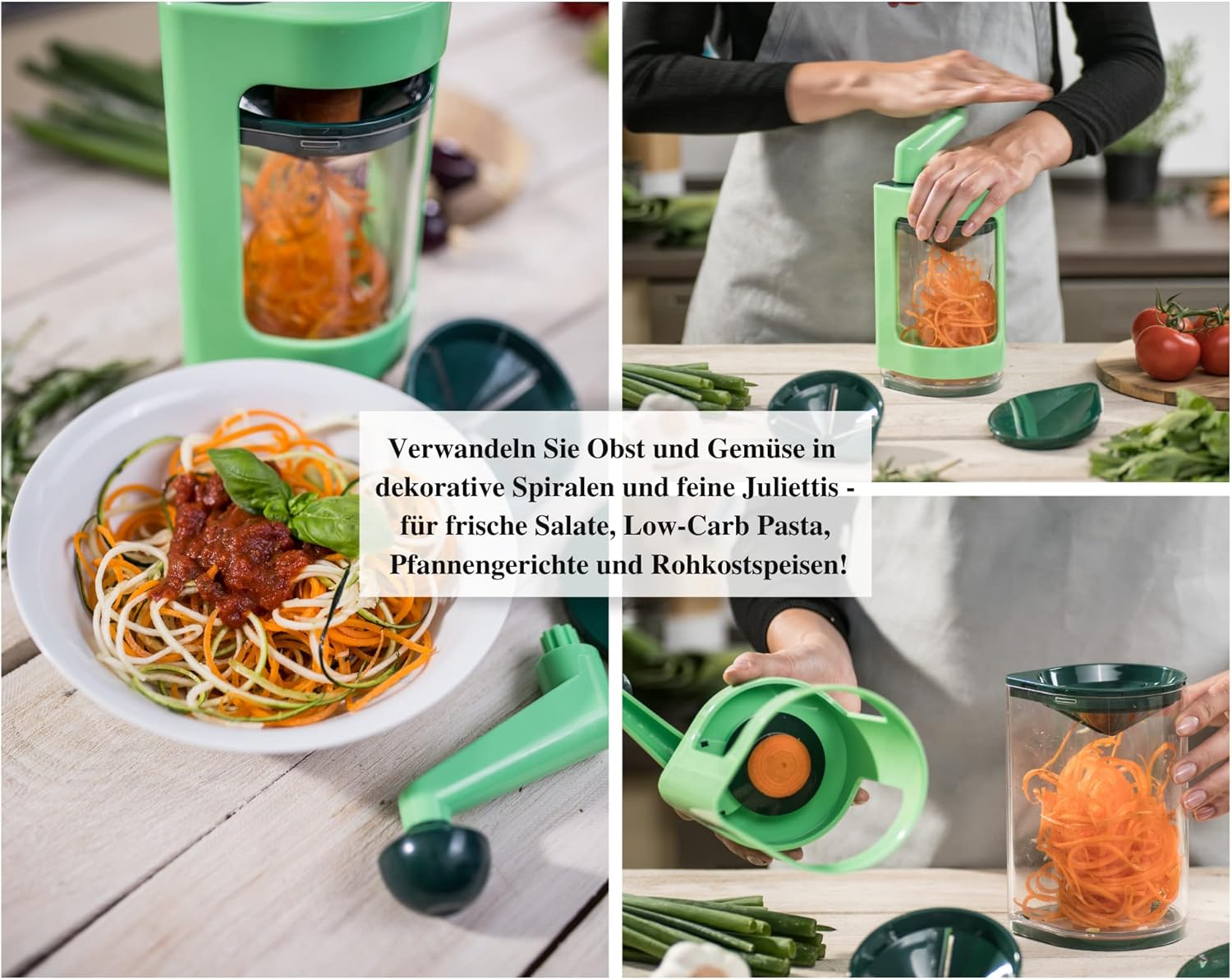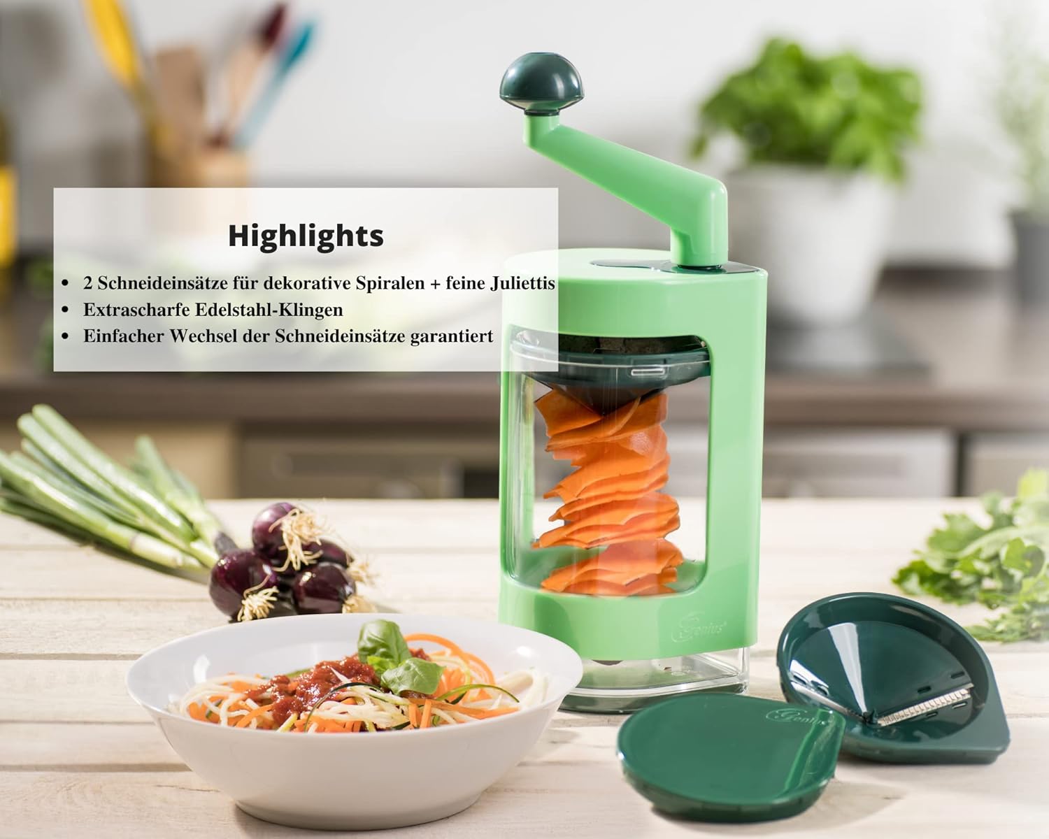 Genius Super Julietti Spiralschneider zum Gemüse schneiden – Gemüsespaghetti, Spiralen und Julienne (2 Stück), Grün | قیمت یورویی 34.89€